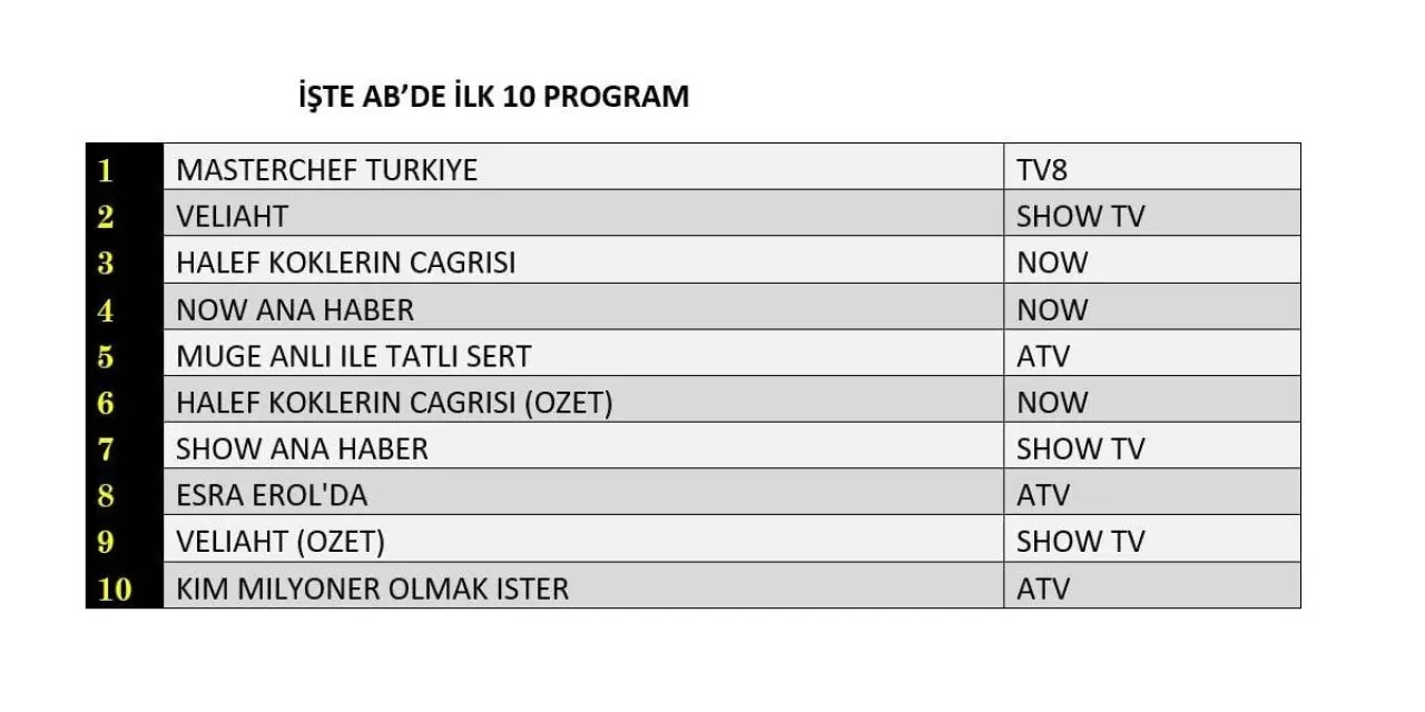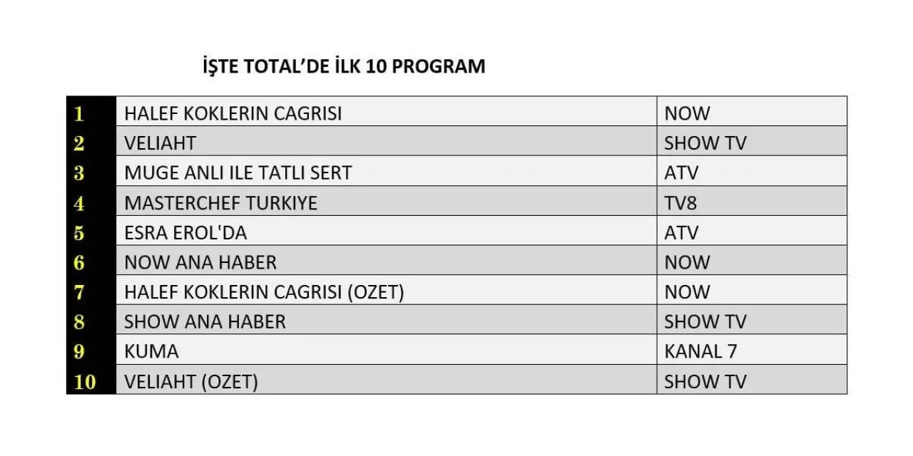 İlgili günün reyting sonuçlarına göre, bazı yapımlar izleyicilerin ilgisini daha fazla çekmeyi başardı. Özellikle birkaç yapım, izlenme oranları ile dikkat çekerken, sıralamalarda da önemli bir yer edinmeyi başardı. Bu yapımlar arasında en çok hangi projenin var olduğu merak edilen bir konu haline gelirken, izleyiciler arasında bu konudaki tartışmalar da hız kazandı. Reytinglerdeki bu üstünlük, her yapım için büyük bir motivasyon kaynağı olarak öne çıkıyor.