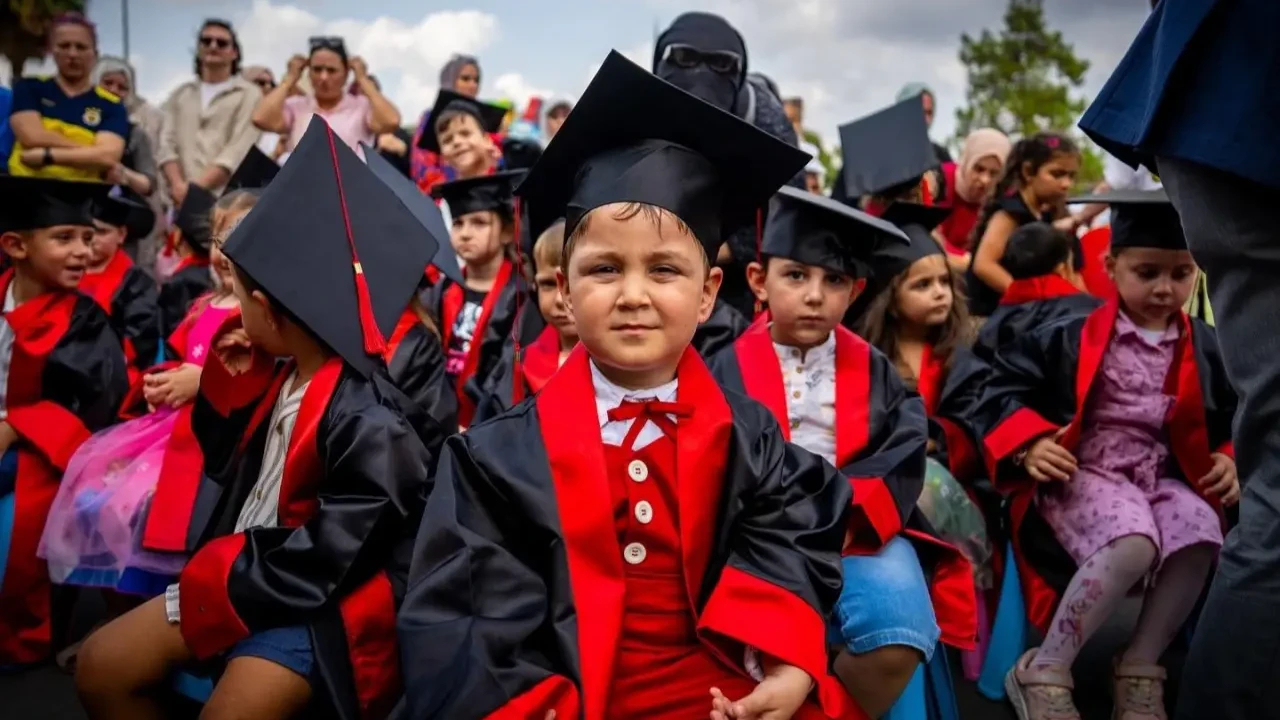 Lokomotif Çocuk Köyü’nde okul öncesi eğitimini tamamlayan çocuklar kep attı.