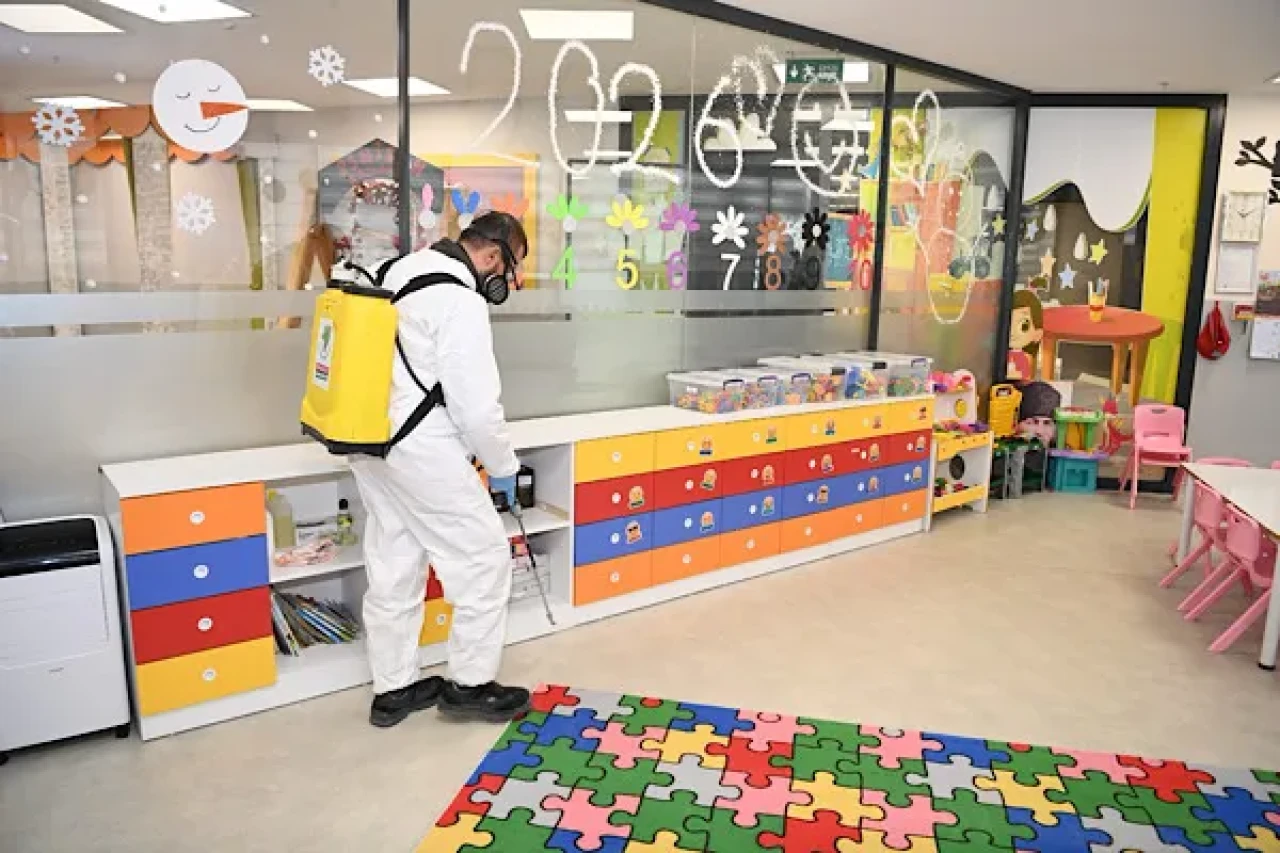 Çocukların sağlıklı bir ortamda eğitime devam etmesi amacıyla gerçekleştirilen dezenfeksiyon işlemleri; sınıflar, oyun alanları ve yemekhaneler gibi tüm ortak kullanım noktalarını kapsadı.
