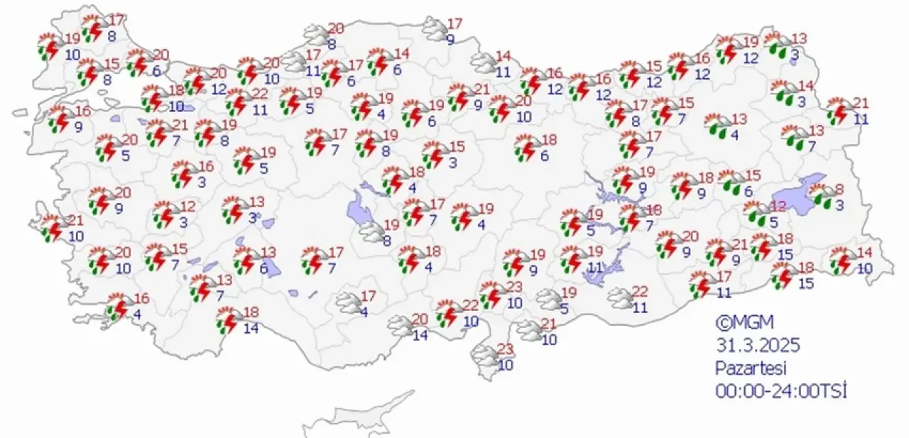 31 MART PAZARTESİ HAVA DURUMU