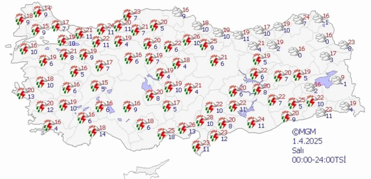 1 NİSAN SALI HAVA DURUMU