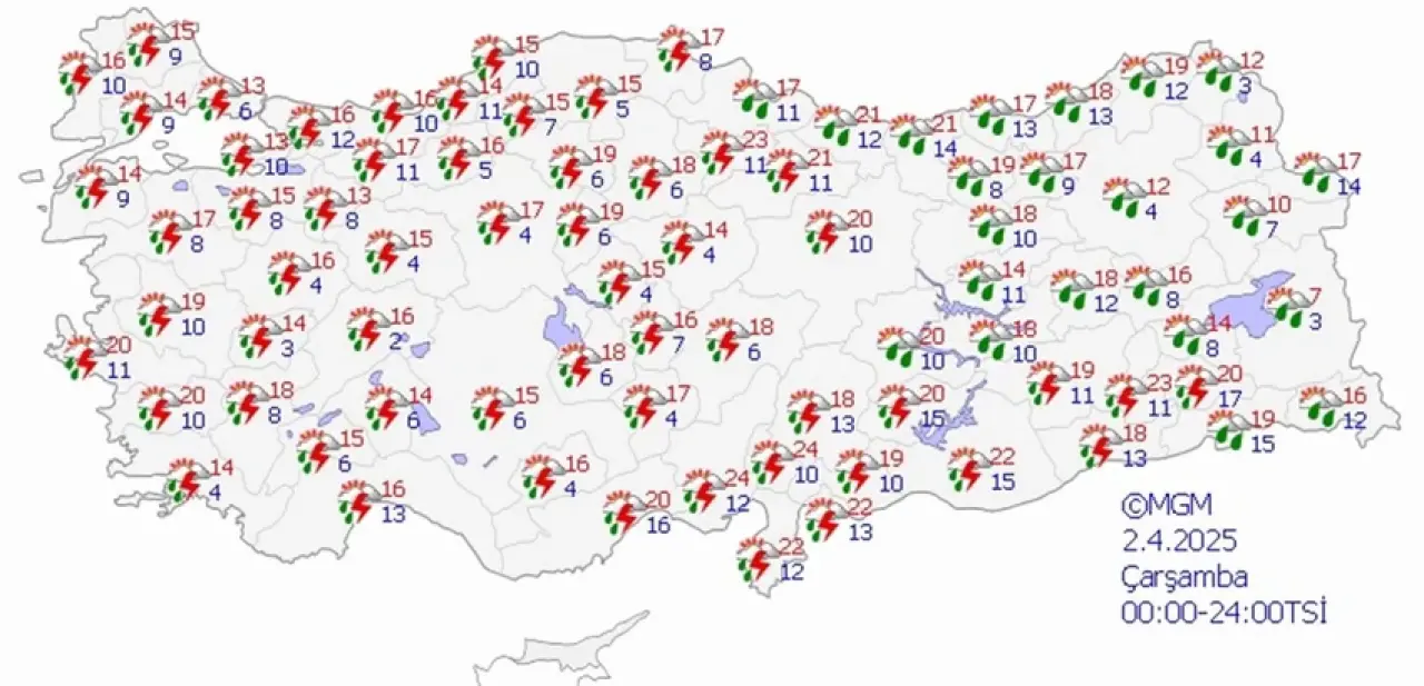 2 NİSAN ÇARŞAMBA HAVA DURUMU