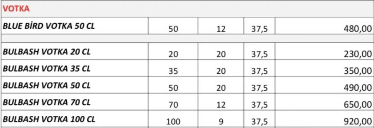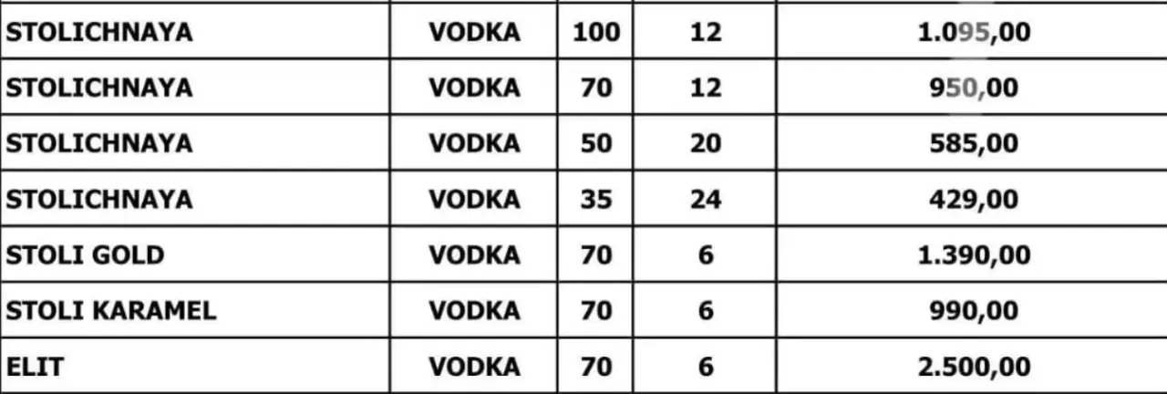 Resmi listelerin yayınlanmasıyla birlikte votka fiyatları sürekli olarak güncellenmektedir.