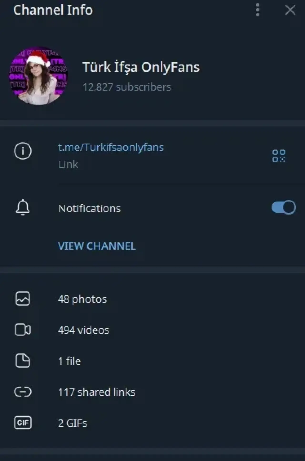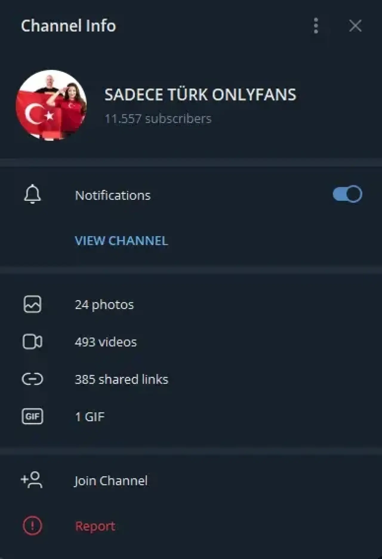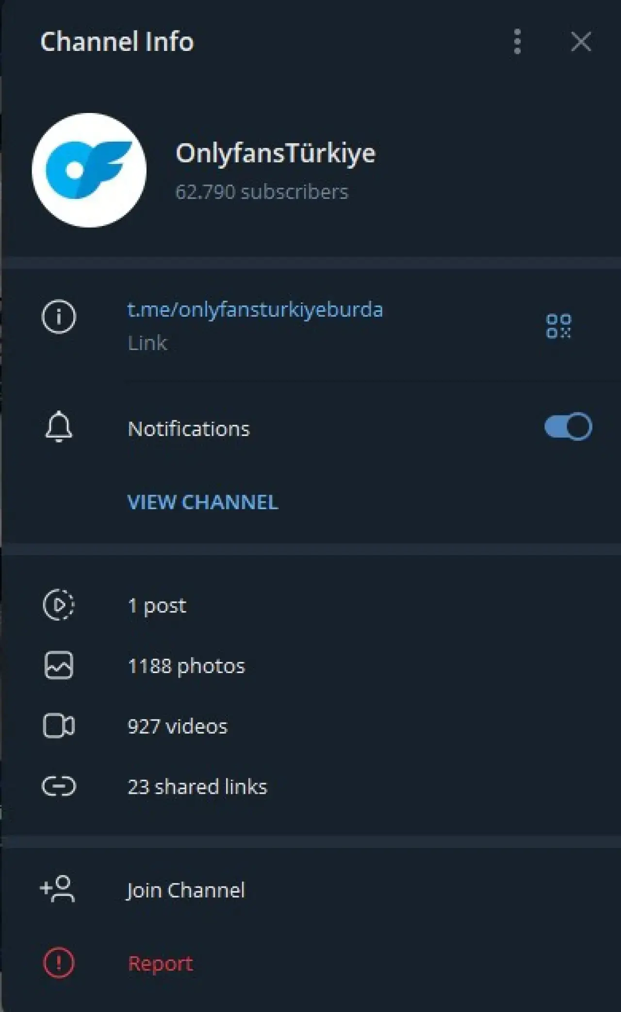 | Kanal Tanımı | Türk İfşa OnlyFans kanalı, içeriklerin çoğunlukla linkli veya reklamlı olduğu ancak bazı Türk OnlyFans ve ifşa videolarının sansürsüz şekilde paylaşıldığı bir platformdur. Giriş ya da üyelik zorunluluğu bulunmamakta, herkesin erişimine açıktır. |
