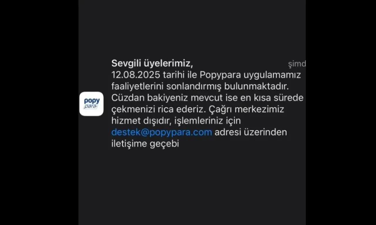 12.08.2025 tarihi ile Popypara uygulamamız faaliyetlerini sonlandırmış bulunmaktadır. Cüzdan bakiyeniz mevcut ise en kısa sürede çekmenizi rica ederiz."