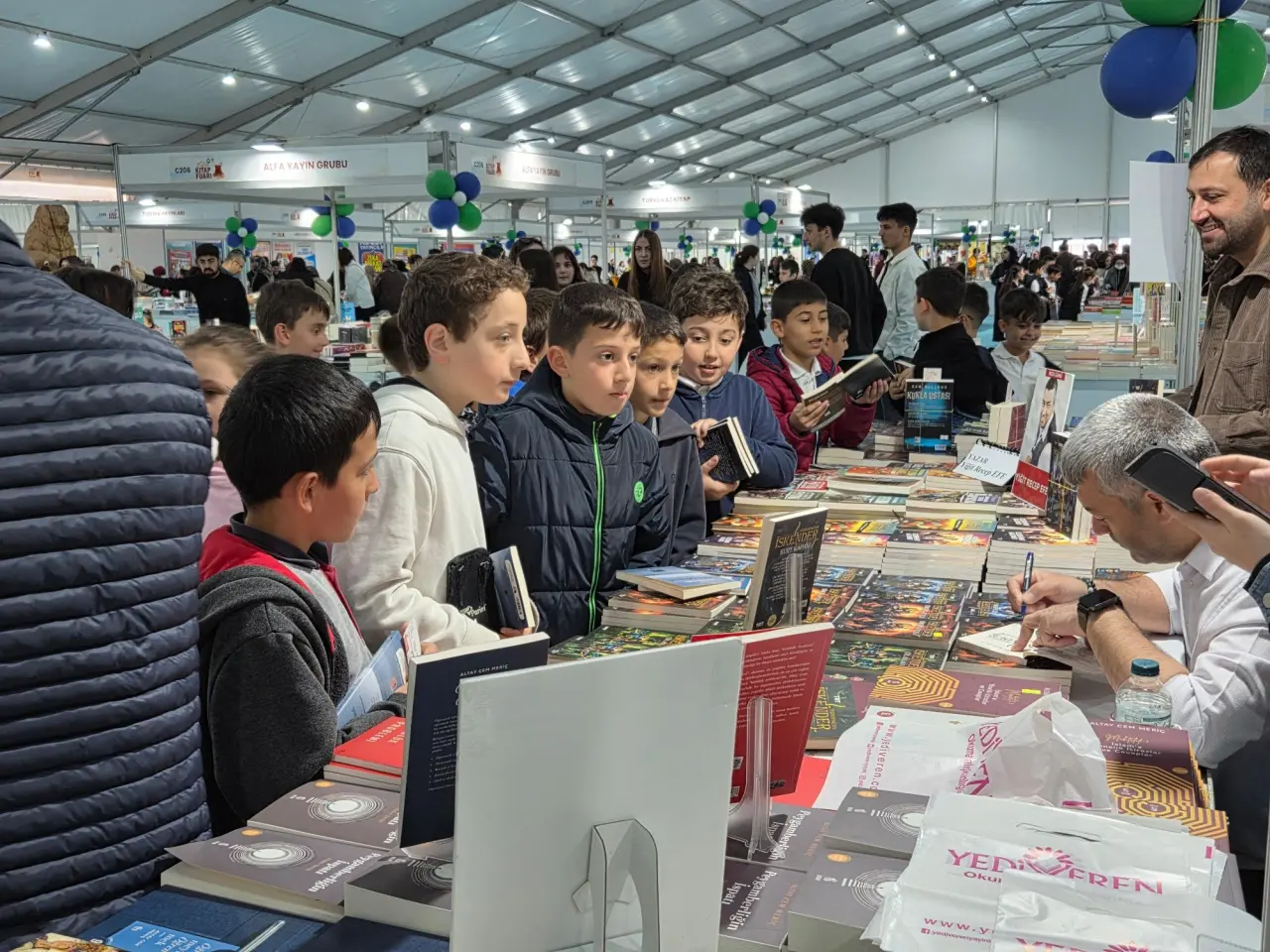 Rize’de düzenlenen Kitap Fuarı, altıncı gününde de özellikle öğrencilerin yoğun ilgisiyle renkli ve hareketli anlara sahne olmaya devam ediyor. Rize Kitap Fuarı kapsamında fuar alanını dolduran okul grupları, kitaplarla buluşmanın heyecanını yaşarken kültürel bir şölenin parçası oluyor.Gençler fuar boyunca yalnızca kitap incelemekle kalmıyor; aynı zamanda yazarlarla birebir sohbet etme imkânı da buluyor. Bu sayede hem yeni eserler keşfediliyor hem de okuma alışkanlıklarının gelişmesine katkı sağlanıyor. Çocukların ve gençlerin enerjisiyle fuar atmosferi her geçen gün daha da zenginleşiyor.