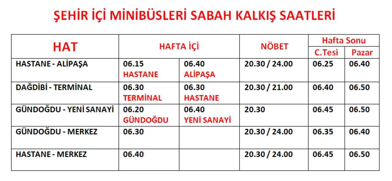 Şehir İçi Minibüs Sabah Kalkış Saatleri