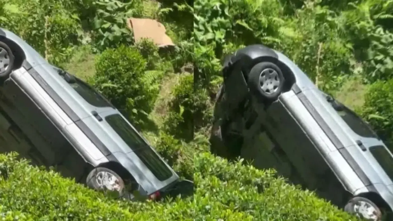 Rize’de seyir halindeki hafif ticari araç çay bahçesine yuvarlandı. Meydana gelen kazada çay bahçesine yuvarlanan araçtaki 2 kişi yaralandı.