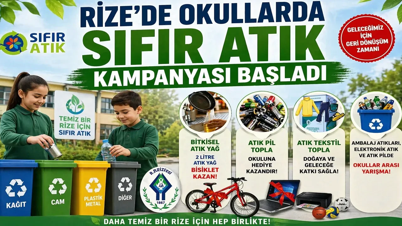 Rize Belediyesi, "Sıfır Atık" kampanyasıyla okullarda çevre bilincini artırmayı amaçlıyor. Öğrenciler, çeşitli atık türlerini toplayarak ödüller kazanacak. Kampanya, sürekli sürdürülebilir çevre için farkındalık yaratma hedefine odaklanıyor ve eğitim dönemince devam edecek.