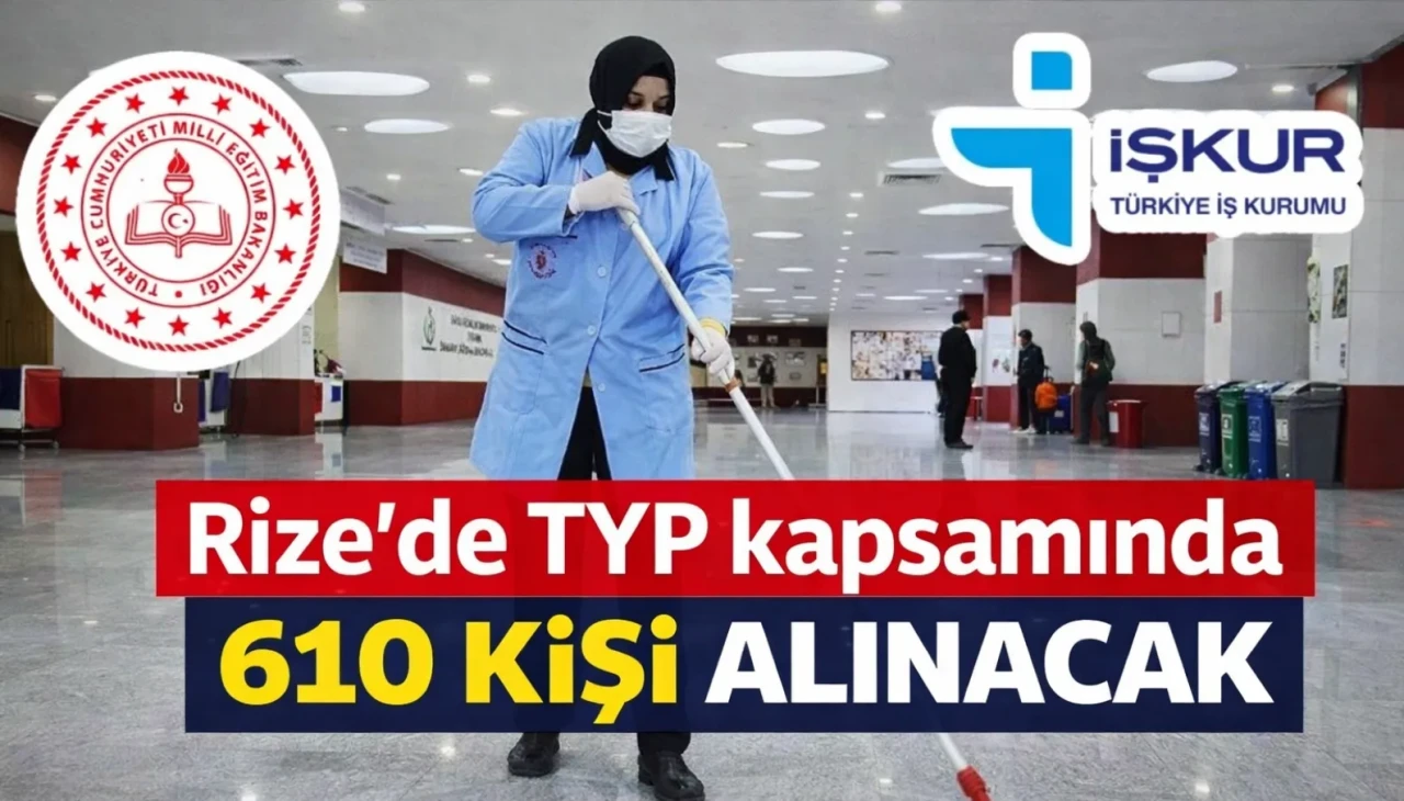 Rize Çalışma ve İş Kurumu İl Müdürlüğü tarafından, Rize Milli Eğitim Müdürlüğü bünyesinde il merkezi ve ilçelerde 12 Mart 2026 – 30 Haziran 2026 tarihleri arasında çalıştırılmak üzere 610 kişilik Toplum Yararına Program (TYP) düzenleneceği duyuruldu.