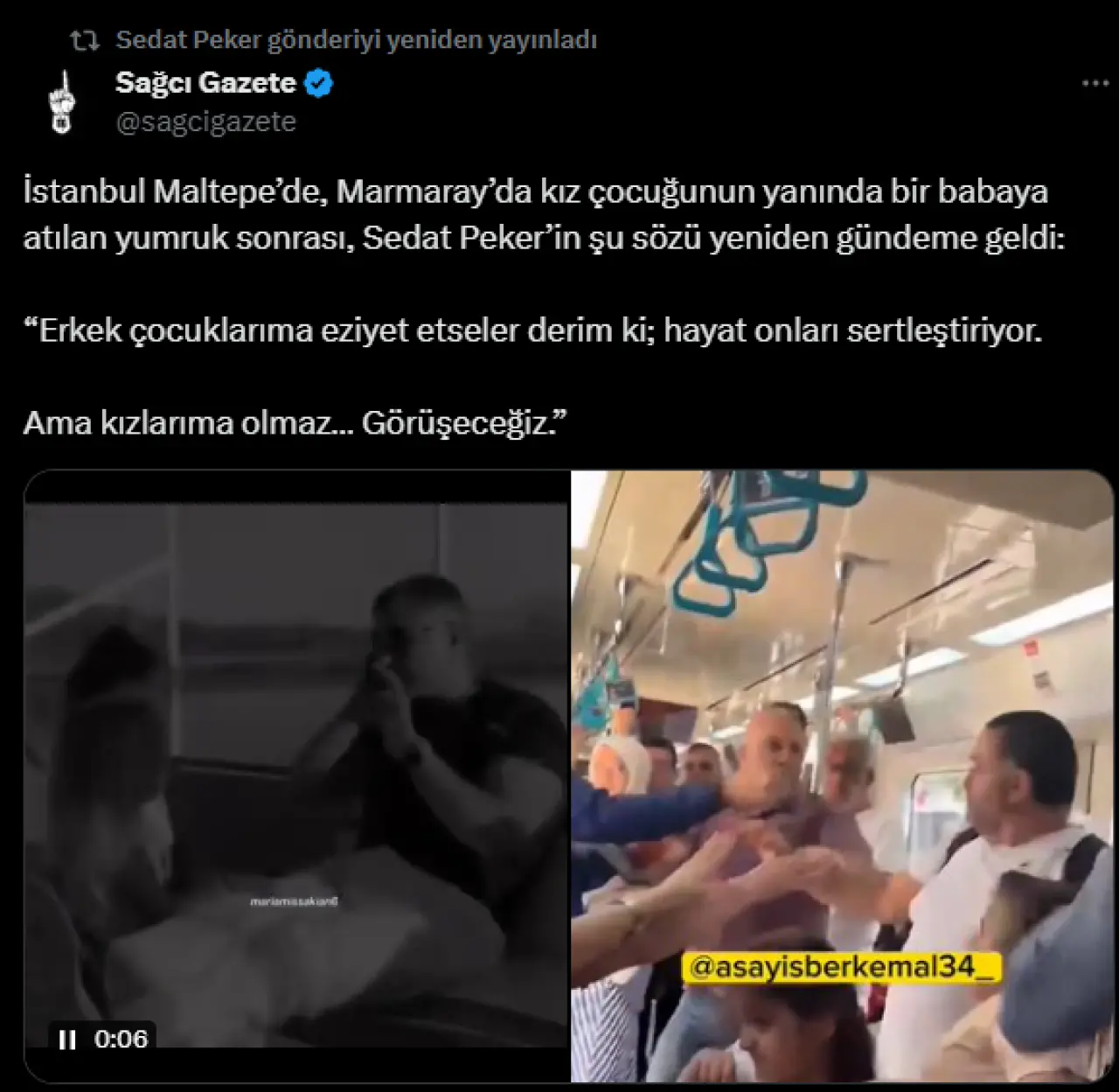 Tartışmanın büyümesiyle birlikte Sedat Peker’in geçmişte söylediği bir söz yeniden dolaşıma sokuldu. “Erkek çocuklarıma eziyet etseler derim ki; hayat onları sertleştiriyor. Ama kızlarıma olmaz…” şeklindeki ifadesi, yaşanan olayla ilişkilendirilerek çok sayıda kullanıcı tarafından paylaşıldı. Peker’in bu sözü içeren bir paylaşımı retweetlemesi de dikkat çekti. İşte Sedat Peker’in retweeti: