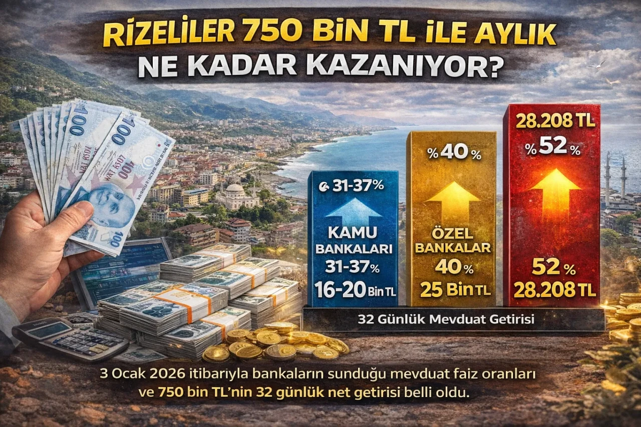 Kamu bankalarında faiz oranları yüzde 31 ile 37 arasında değişirken, özel ve dijital bankalarda bu oranlar yüzde 40’ın üzerine çıkmış durumda. Bu durum, 750 bin TL’lik birikimi olan Rizeliler için aylık kazançta 10 bin TL’yi aşan farklar doğuruyor.