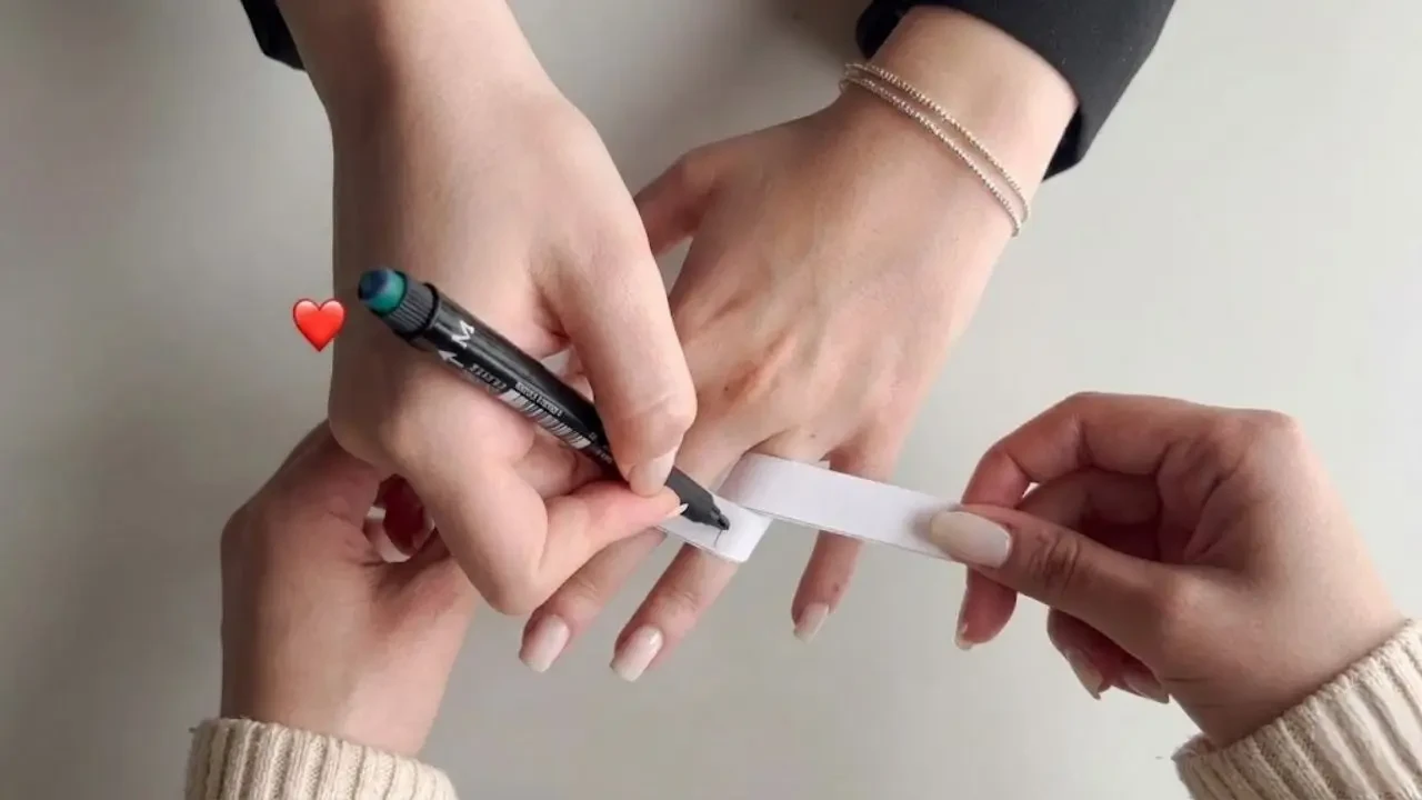 Eğer yüzüğü kendinize alıyorsanız veya “sürpriz olmasa da olur, tam olsun” diyorsanız, saniyeler süren kağıt yöntemini kullanabilirsiniz. Mezura aramanıza gerek yok, herhangi bir kağıt parçası işinizi görür.