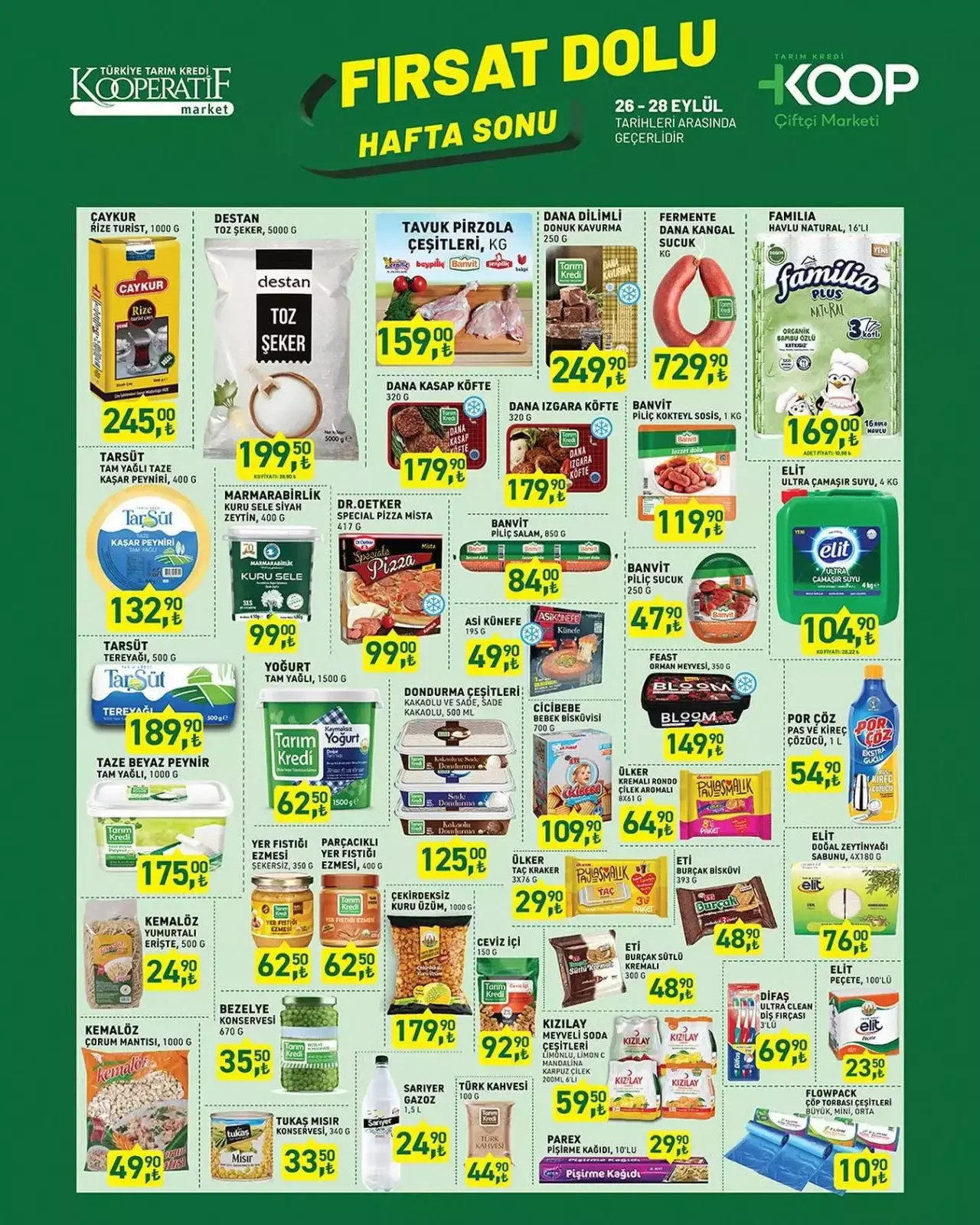 Tarım Kredi Kooperatif aktüel kataloğu bu hafta sonu indirimleri paylaşıldı. 26 Eylül'de başlayan Tarım Kredi Market indirim günlerinin 28 Eylül Pazar gününe kadar devam edeceği belirtildi. Onlarca farklı ürünün satışa sunulduğu tarım Kredi Kooperatif market aktüel kataloğundaki fiyatları sizler için derledik. İşte, 26-28 Eylül 2025 Tarım Kredi Kooperatif Market aktüel indirimli ürünler tam ve eksiksiz fiyat listesi...