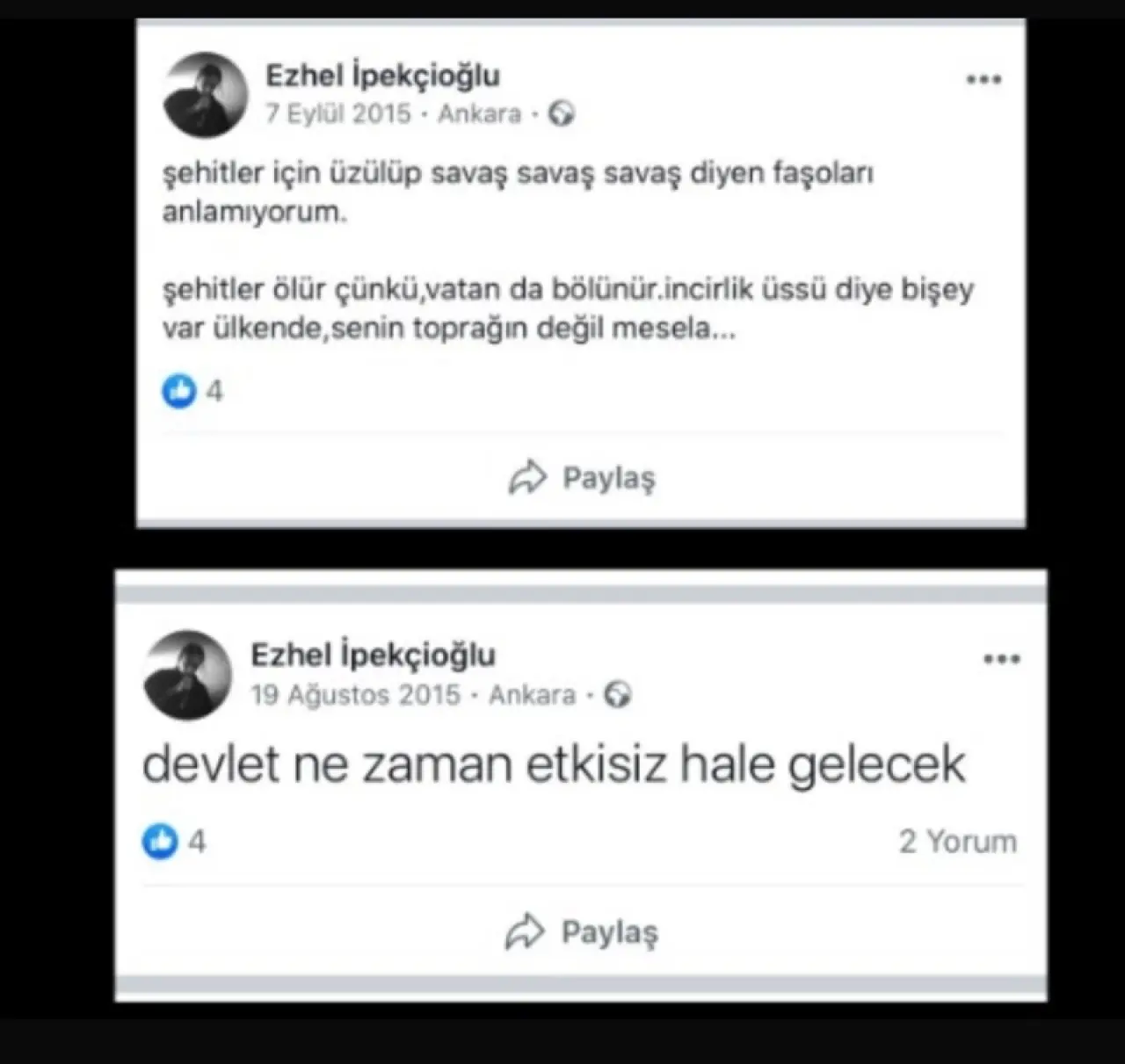 Ayrıca paylaşımda Ezhel'in daha önce terör örgütüne yakınlığı ile gündeme gelen paylaşımlarına yer verildi.