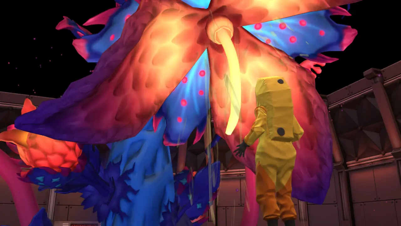 Gizli Laboratuvara geri dönün ve Hazmat Giysisini giyin. Envanterinizde üzerine tıklamanız ve Hazmat Giysisini Giy'i seçmeniz yeterli. Daha önce geçemediğiniz mor spor bulutlarının olduğu koridordan geçin ve anahtar kartınızı kullanarak kapıyı açın. Her iki merdiveni de inerek, muhafaza kapsüllerindeki garip bitkilerle dolu büyük bir odaya ulaşın. Mor mantarlarla kaplı başka bir anahtar kart kapısına giden başka bir koridor olacak. Koridordan aşağı inin ve o kapıyı açın.