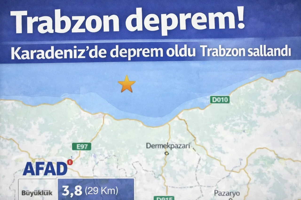 Depremin merkez üssünün Trabzon’a yaklaşık 28.66 kilometre uzaklıkta olduğu belirtildi. Sarsıntı özellikle Trabzon merkez ve kıyı ilçelerinde hissedilirken, ilk belirlemelere göre herhangi bir olumsuzluk yaşanmadı.