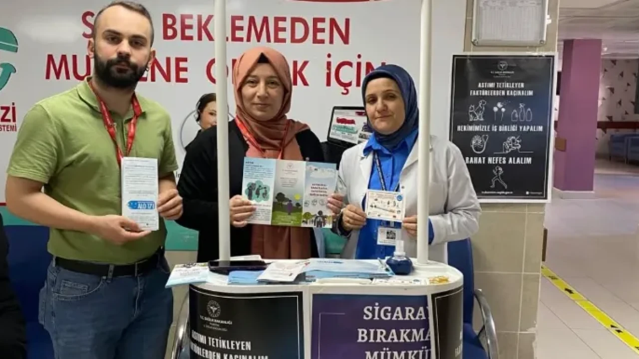 Trabzon İl Sağlık Müdürlüğü, 6 Mayıs Dünya Astım Günü kapsamında halkı bilgilendirmek ve farkındalık oluşturmak amacıyla anlamlı bir etkinliğe imza attı. Bulaşıcı Olmayan Hastalıklar ve Bağımlılıkla Mücadele Birimi personelleri, Ahi Evren Göğüs Kalp Damar Cerrahisi Eğitim ve Araştırma Hastanesi (GKDCEAH) işbirliğiyle hastane bünyesinde bilgilendirme standı kurdu.