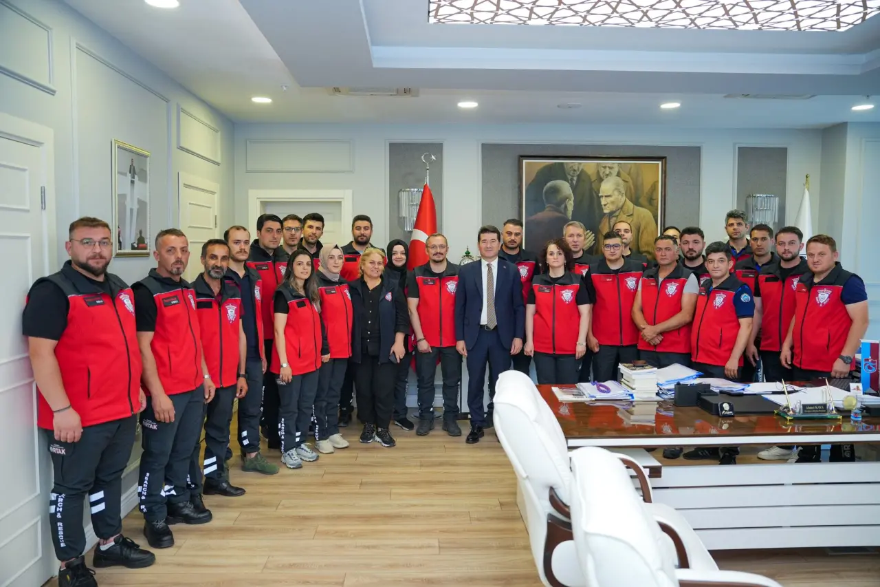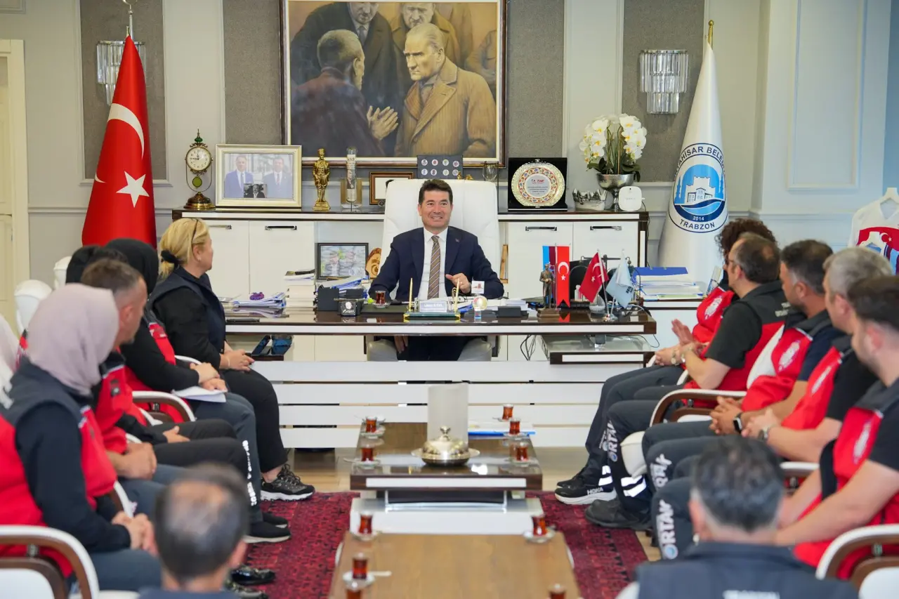 Trabzon Ortahisar Belediyesi bünyesinde kurulan Arama ve Kurtarma Ekibi (ORTAK), Başkan Ahmet Kaya’yı ziyaret etti.