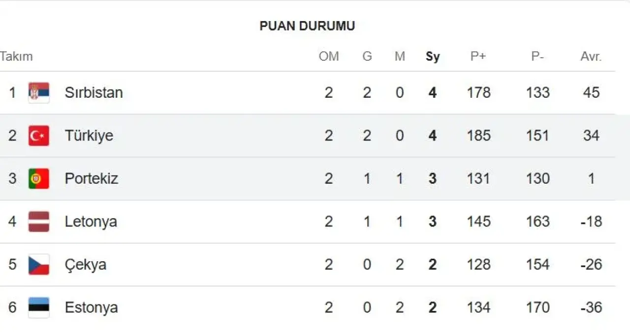 Türkiye eğer Portekiz'i de yenerse A Grubunda 3'te 3 yapacak ve gruptan çıkma mücadelesinde büyük bir avantaj sahibi olacak. Türkiye şu anda Sırbistan'ın ardından 2. sırada yer alıyor. Turnuvada gruplarını ilk 4 sırada tamamlayan takımlar, son 16 turuna yükselecek.