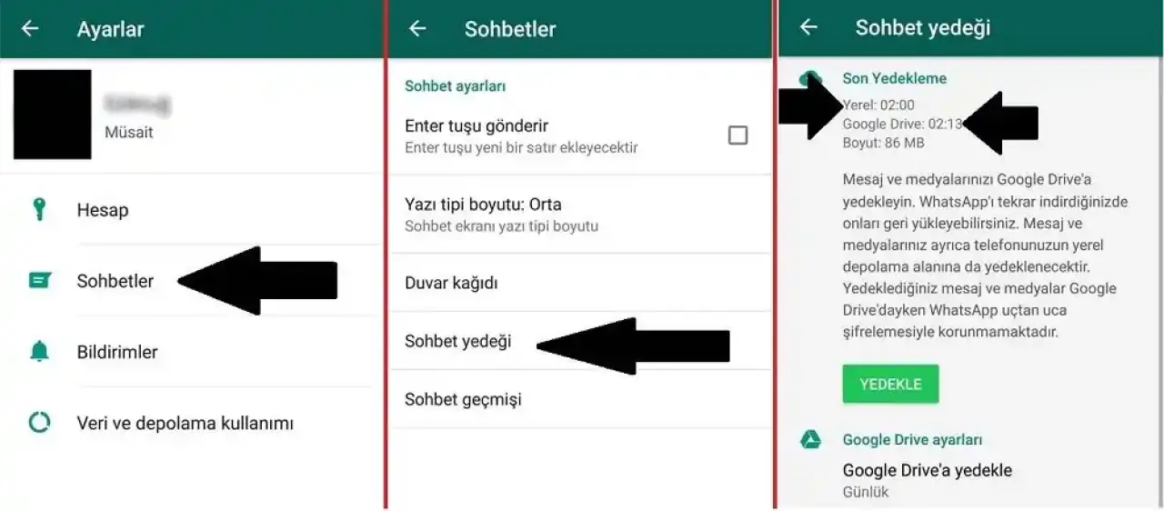 Eğer otomatik olarak yedek alınmasını beklemek istemiyor, anlık olarak kendiniz almak istiyorsanız, “WhatsApp > Ayarlar > Sohbetler > Sohbet Yedeği > Şimdi Yedekle” adımlarını uygulayabilir, sohbet geçmişinizi güven altına alabilirsiniz.