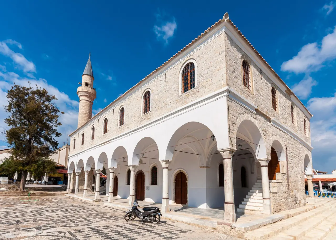 Yuhannis Halopas tarafından 1874 yılında inşa edilen Ayios Konstantinos Kilisesi, yığma moloz taş tekniği ile yapılmıştır. Rumlar için inşa edilen kiliselerden biri olan Ayios Konstantinos Kilisesi, farklı dinleri aynı çatıda buluşturmayı hedeflemiştir. Aynı zamanda esasına sadık kalınarak camiye dönüştürülen bu yapı, hoşgörü kültürünün en güzel örneklerindendir. Üç nefli bazilika yapısı ile dikkat çeken Pazaryeri Camii, tarih severleri kendine hayran bırakıyor.