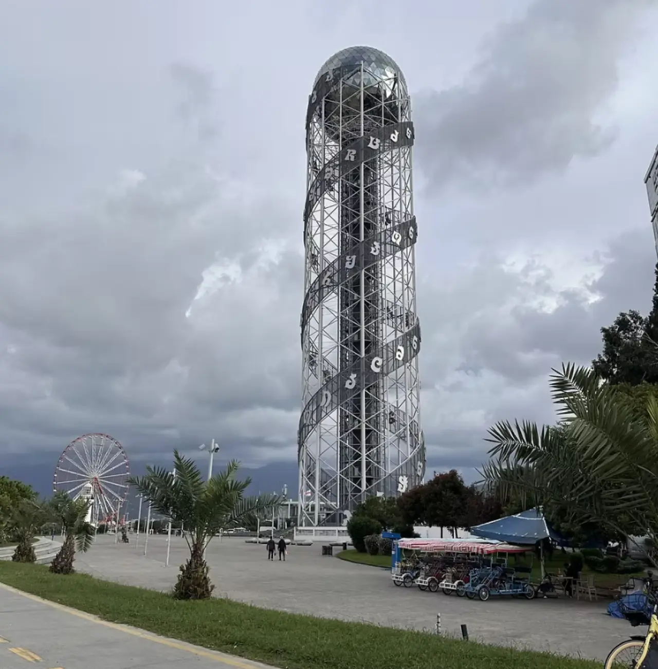130 metre yüksekliğindeki kule, DNA sarmalını andıran bir tasarıma sahip. Üzerinde Gürcü alfabesinin 33 harfi yer alıyor ve bu haliyle hem modern mimari hem de kültürel bir sembol.