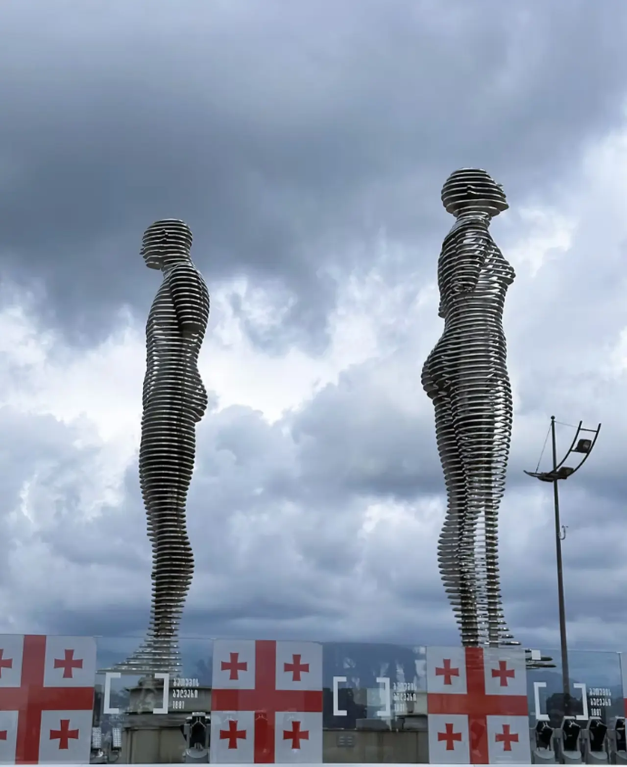 Batum’un en etkileyici simgelerinden biri hiç şüphesiz Ali & Nino Heykeli. Sahil boyunca yürürken bir anda karşınıza çıkan bu hareketli heykel, aslında Gürcü yazar Kurban Said’in ünlü romanındaki trajik aşk hikâyesinden esinlenilmiş.