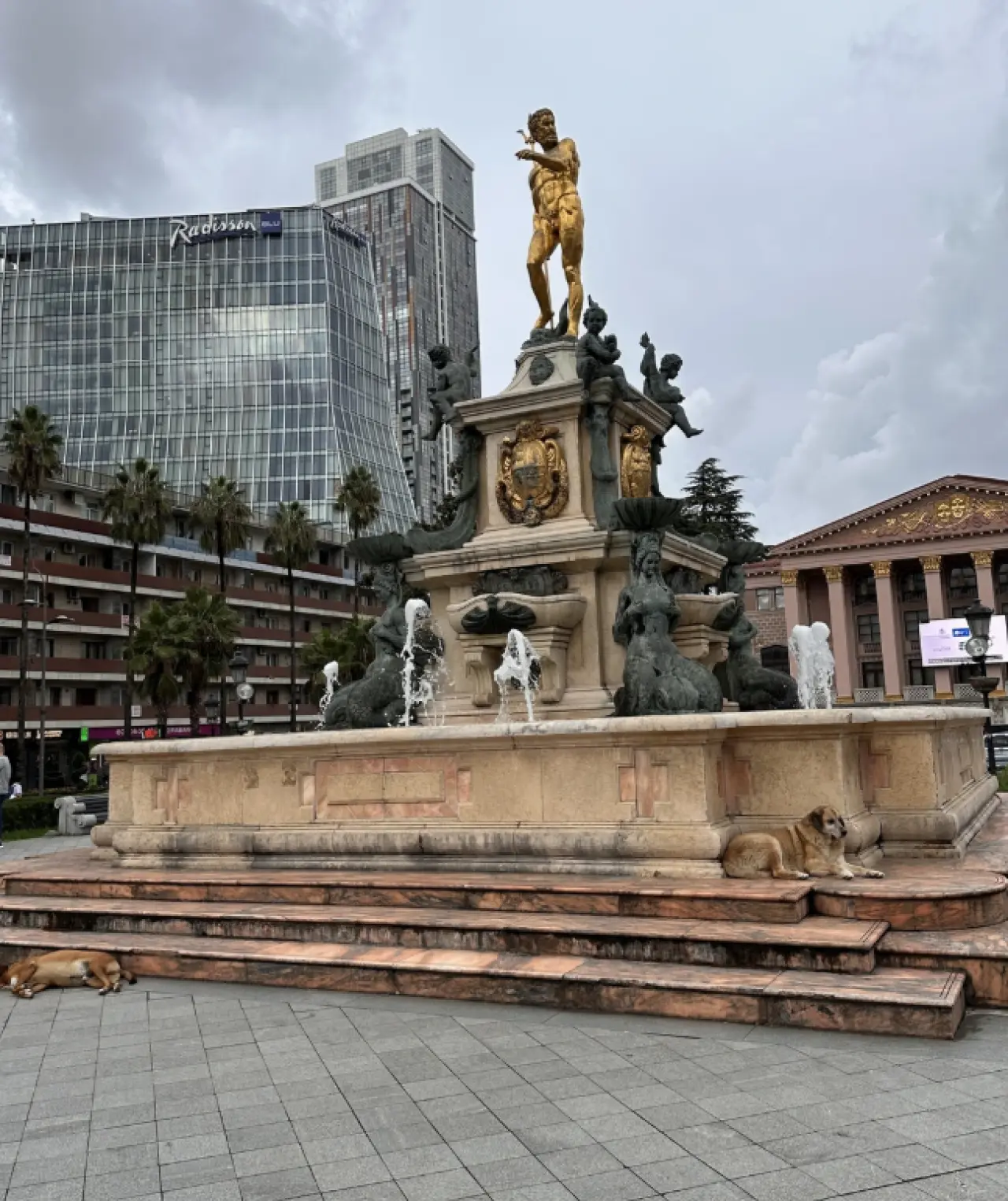 Poseidon Çeşmesi: Altın renkli heykeliyle Avrupa Meydanı’nda dikkat çeken bir diğer yapı