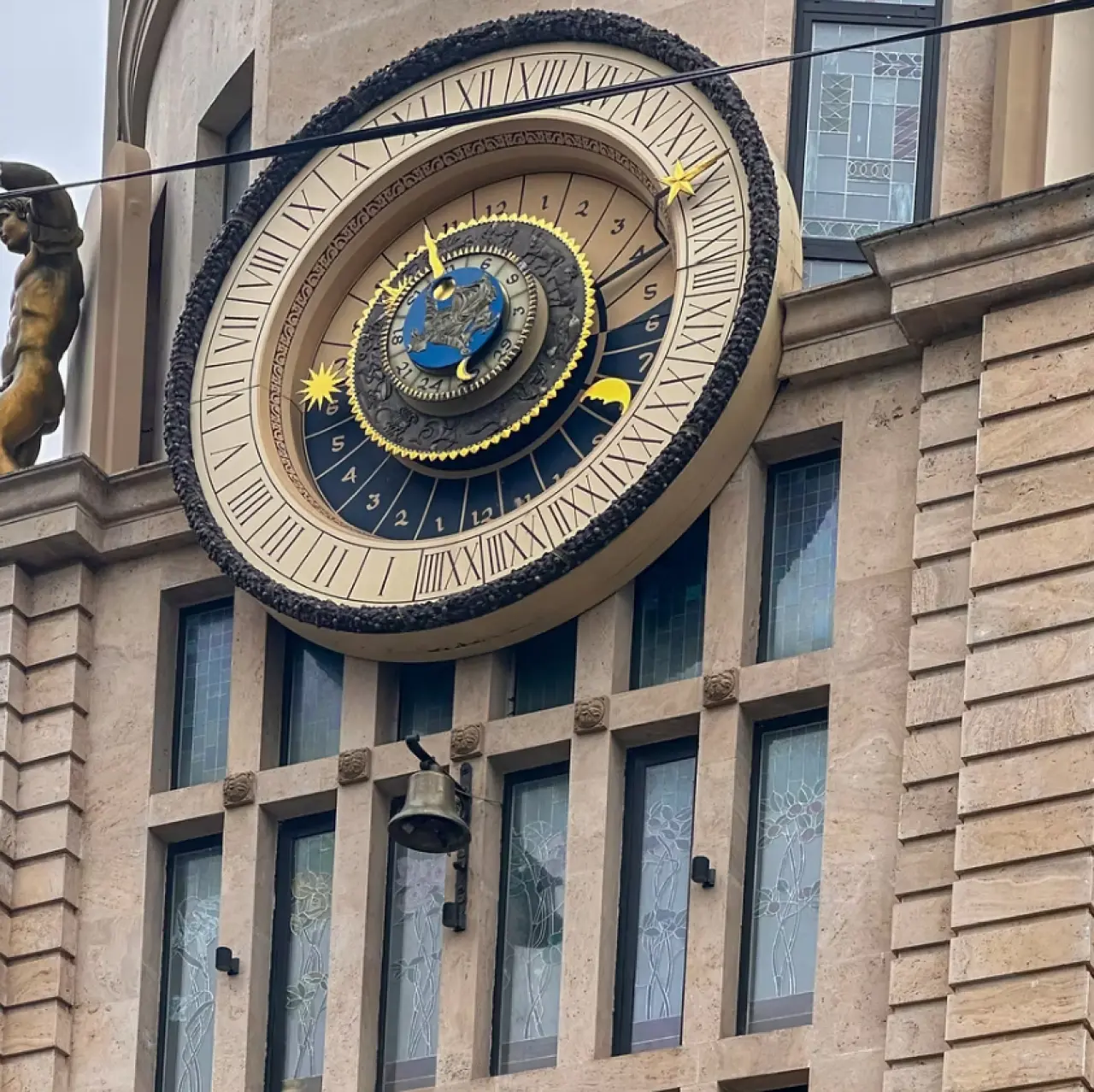 Batum’un en ilginç detaylarından biri de Astronomik Saat. Medea Heykeli ile aynı yol üzerinde, Memed Abashidze Bulvarı’nda yer alıyor. Saat, UNESCO koruması altındaki Eski Banka Binası’nın (National Bank of Georgia) üzerinde bulunuyor. Hem görsel olarak etkileyici hem de şehrin mimari detaylarını keşfetmek isteyenler için çok özel bir nokta.