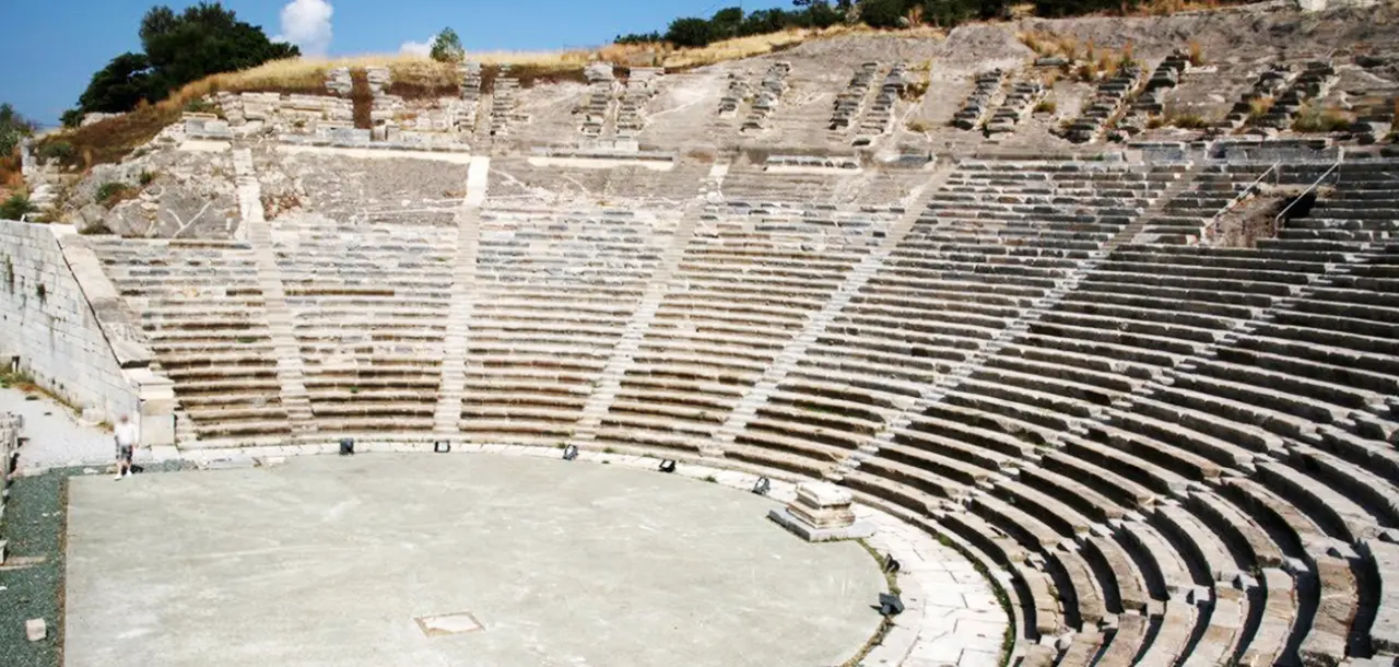 Klasik dönemden günümüze tarihi dokusunu kaybetmeden gelebilmiş Antik tiyatro Bodrum’da Gezilecek Tarihi Yerler arasında. 13 000 kişilik kapasitesi, oyunlardan önce Dynisos adına kurban vermek için yapılan sunak bölmesi, gölgelik olduğu tahmin edilen kocaman oyukları ile Anadolu’nun en eski tiyatrolarından olmasına karşın hala aktif olarak kullanılmaktadır.