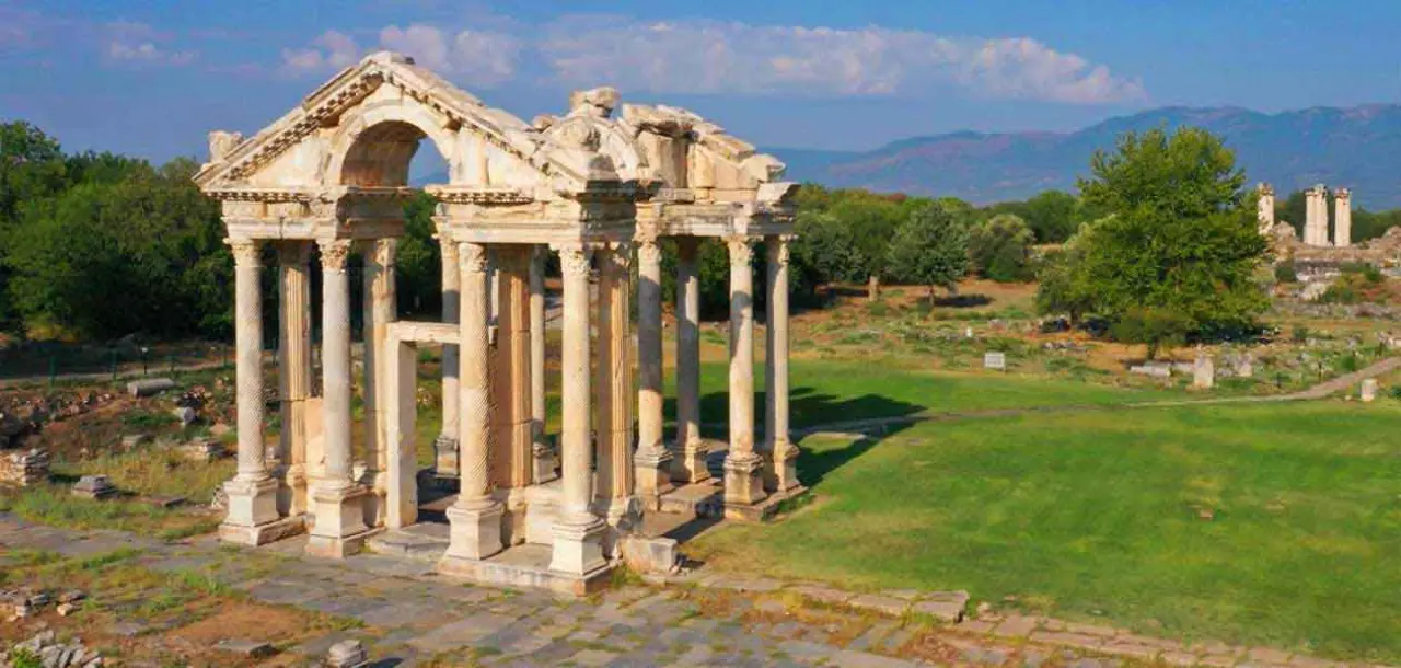 Aydın’da Gezilecek Yerler listesinin vazgeçilmezlerinden olsa da Denizli’ye yakınlığı ile gezi rotanıza ekleyebileceğiniz antik kentlerden Afrodisias. MÖ 5000 yıllık bir geçmişi olan bu şehir içerisinde bulunan Afrodite adanan ve şehre ismini veren Afrodit Tapınağı, tetropylon, tiyatro, stadyum ve agora gibi birçok yapıyı günümüze taşımayı başarmıştır.Denizli'ye Yakın Gezilecek Yerler listesinde olan Afrodisias'a müzekart ile giriş yapabilirsiniz.