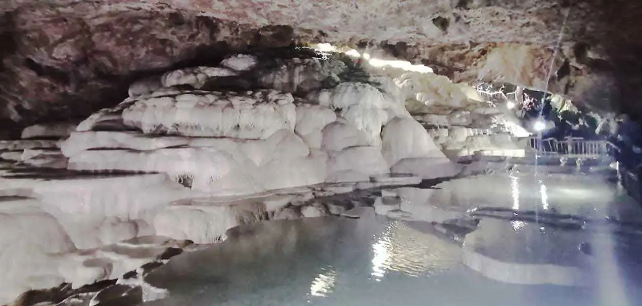 "Mağaradaki Pamukkale" ve "Yeraltı Pamukkalesi" olarak da bilinir. Tıpkı Pamukkale Travertenleri gibi mağaranın içerisinde bembeyaz travertenler oluşmuştur. Termal suyla oluşan bu yapılara ek mağarada sarkıt dikit ve damla taşı oluşumları da mevcuttur. Suyunda bulunan yoğun kükürt nedeniyle mağarada kükürt kokusu hakimdir. Mağara habitatı dikkate alınarak mağara içinde yarasa ve yarasa yuvalarının olduğunu hatırlatmak gerek. Ancak insanlara herhangi bir zarar vermezler. Mağara loş bir şekilde ışıklandırılmıştır.