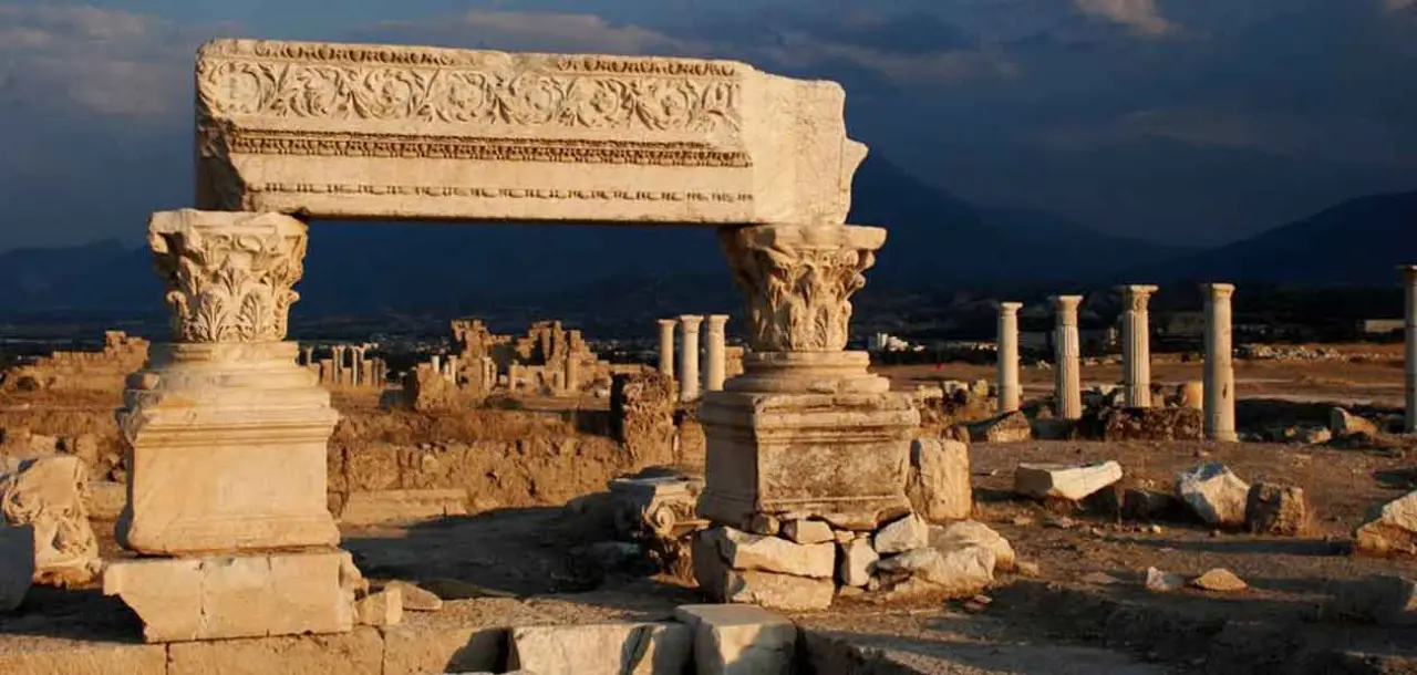 Laodikya Denizli'nin 6 kilometre kuzeyinde bulunan, dönemin sanat ve kültür merkezi olan, Seleukos Kralı II. Antiokhos'un eşi Laodike adına kurduğu şehirdir. Lycus Nehri kenarında kurulan şehir çok daha öncesinde de yerleşim yeri olarak kullanıldığını yapılan kazılarda çıkan materyallerin yaşına bakılarak tespit edilmiştir. Şehirde dönemin halkı ile pek çok anıtsal yapı yapılmıştır. Bu yüzden işlemeleri bol ve süslü bir mimariye sahiptir.