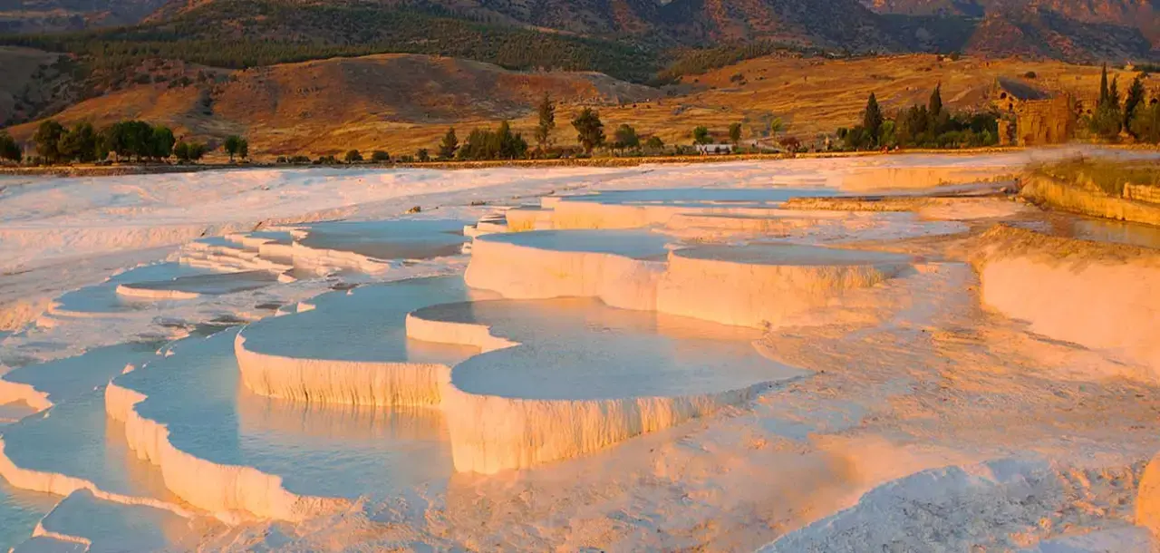 Jeopolitik miras olarak Denizli’ye hediye edilen Pamukkale’de, Denizli'de Gezilecek Yerler listesine girmesine neden olan gün doğumu ve batımında eşsiz manzaralara tanıklık edebilir, ışıkların travertenlerde danslarını karelere yansıtacak fotoğraflar çekebilirsiniz. Travertenlerin tepe bölümünden Denizli'nin pek çok yeri görülür. Bu da sizin için eşsiz bir manzara seyri demektir.