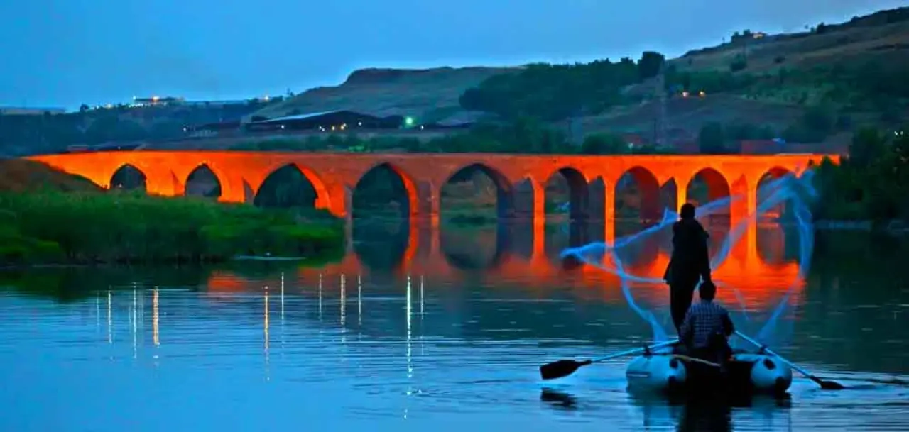 On adet açıklığı olması nedeniyle halk arasında On Gözlü Köprü olarak anılan Dicle Köprüsü, Diyarbakır Meşhur Yerleri arasında bulunmaktadır. On Gözlü Köprü tarihi tam olarak bilinmemesine karşın, köprüde yer alan kitabeye göre 1065 yılında Ubeyd adlı bir mimar tarafından yapılmıştır. Köprüyü yaptıran kişi ise Mervaniler beyliğinden Kadı Ebü'l-Hasan Abdülvâhid'dir. On Gözlü Köprü'nün güney cephesindeki 9 ve 10 numaralı kemerler arasında köprünün kitabeleri görülmektedir. Diyarbakır'ın Sur ilçesinde Dicle Nehri üzerinde yer alan On Gözlü Köprü yol tarifi için Diyarbakır gezilecek yerler haritasına göz atabilirsiniz. Akşam karanlığında nehre yansıyan şehir ışıklarının birlikteliğiyle güzel bir manzara sunan Dicle Köprüsü'nü Diyarbakır'da gece gezilecek yerler listenize dahil etmenizi öneririz.
