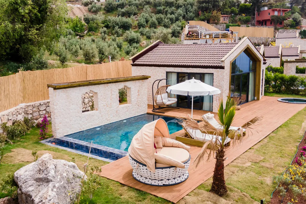 Nerede? Fethiye Göcek bölgesinde konumlanan Santana Villas, sadece oda konseptiyle hizmet veriyor. Tamamen doğayla baş başa kalacağınız bu tesis, 7 özel havuzlu villadan oluşuyor. Villaların içerisinde ihtiyacınız olan her şeye kolaylıkla ulaşacak ve evinizdeki konforu aratmayacak! Çekirdek aileler ve balayı çiftleri için ideal tesislerden biri olan Santana Villas, kendisini özel hissetmek isteyenlerin adresidir.