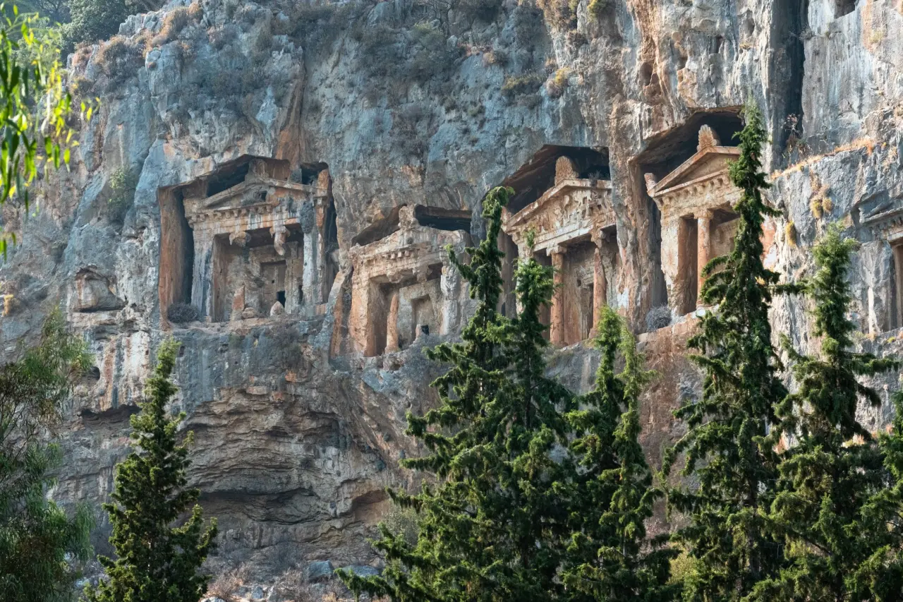 Nasıl bir yer? Neredeyse yüze yakın bir basamakla çıkarak ulaşacağınız bu yere ilk adım attığınız an da güzelliğine hayran olacaksınız. Hatta Fethiye Körfezi ve Şövalye Adası manzaralarına bu noktadan tanıklık edeceksiniz. Geniş bir alana kurulu olan bu anıtların dışında daha pek çok lahit ve kaya mezarının görüldüğünün de altını çizelim. Tepeye doğru ilerledikçe sur kalıntıları, küçük kaya mezarları ve sarnıç gibi noktaları da göreceksiniz. Türkiye’deki en görkemli noktalardan biri olan bu yeri, mutlaka Fethiye gezilecek yerler listenize eklemeyi unutmayın diyelim ve devam edelim…