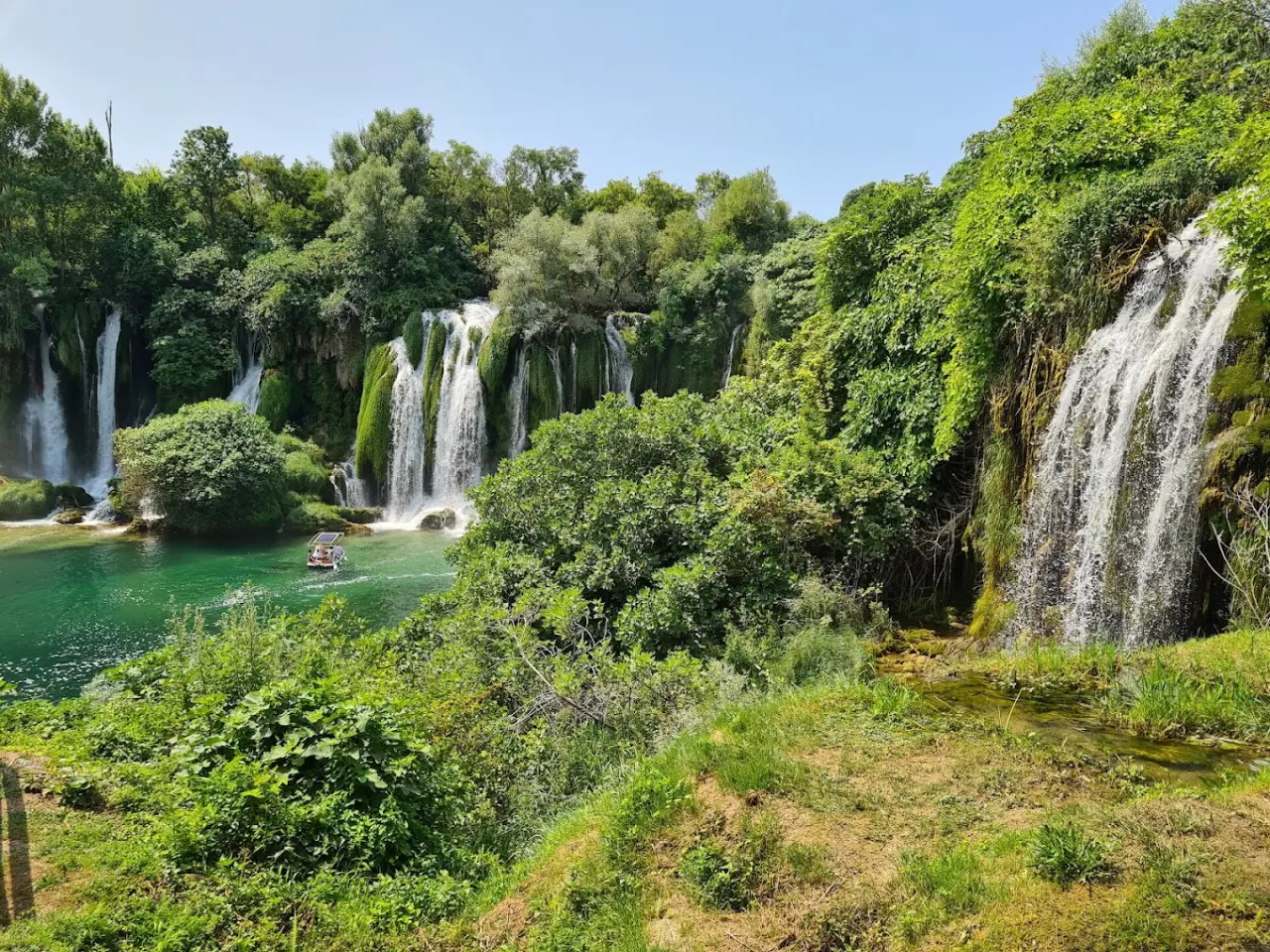 Mostar’a yaklaşık 40 dakika uzaklıktaki Kravice Şelaleleri, doğanın tam kalbine attığım bir adım gibiydi. Daha arabadan iner inmez, uzaktan gelen su sesiyle içimde tarifsiz bir heyecan başladı. Ağaçların arasından ilerleyip şelaleyi ilk gördüğümdeyse… resmen büyülendim.