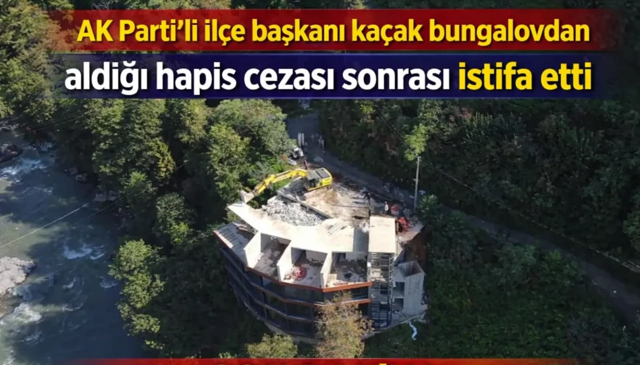 Rize’nin Çamlıhemşin ilçesinde, kaçak bungalov yaptırdığı gerekçesiyle 3 ay hapis cezası alan AK Parti Çamlıhemşin İlçe Başkanı Adem Serin, cezasının kesinleşmesinin ardından görevinden ve parti üyeliğinden istifa etti.