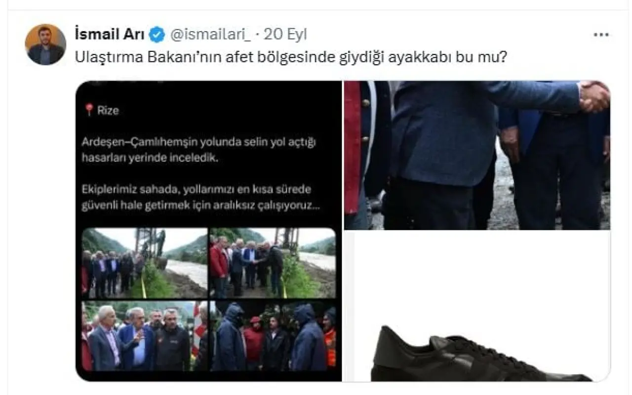 Rize Haber Gündem Bakan’ın ayakkabısının fiyatı Rize'deki selde gündem oldu. Vatandaş tepki yağdırdı