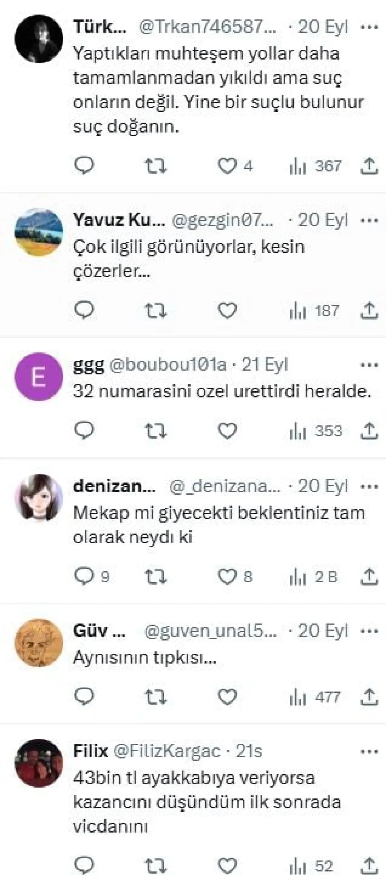 Uraloğlu ise konuyla ilgili henüz bir açıklama yapmadı. Rize’deki sel, bölgede ciddi hasara yol açarken, altyapı yatırımlarının yetersizliği eleştiriliyor. Bakan’ın lüks ayakkabısı, ekonomik kriz ve afet yönetimindeki tartışmaları daha da alevlendirdi. Sosyal medya, bu tür olayların halkla yöneticiler arasındaki uçurumu derinleştirdiğini gösteren bir platform haline geldi.