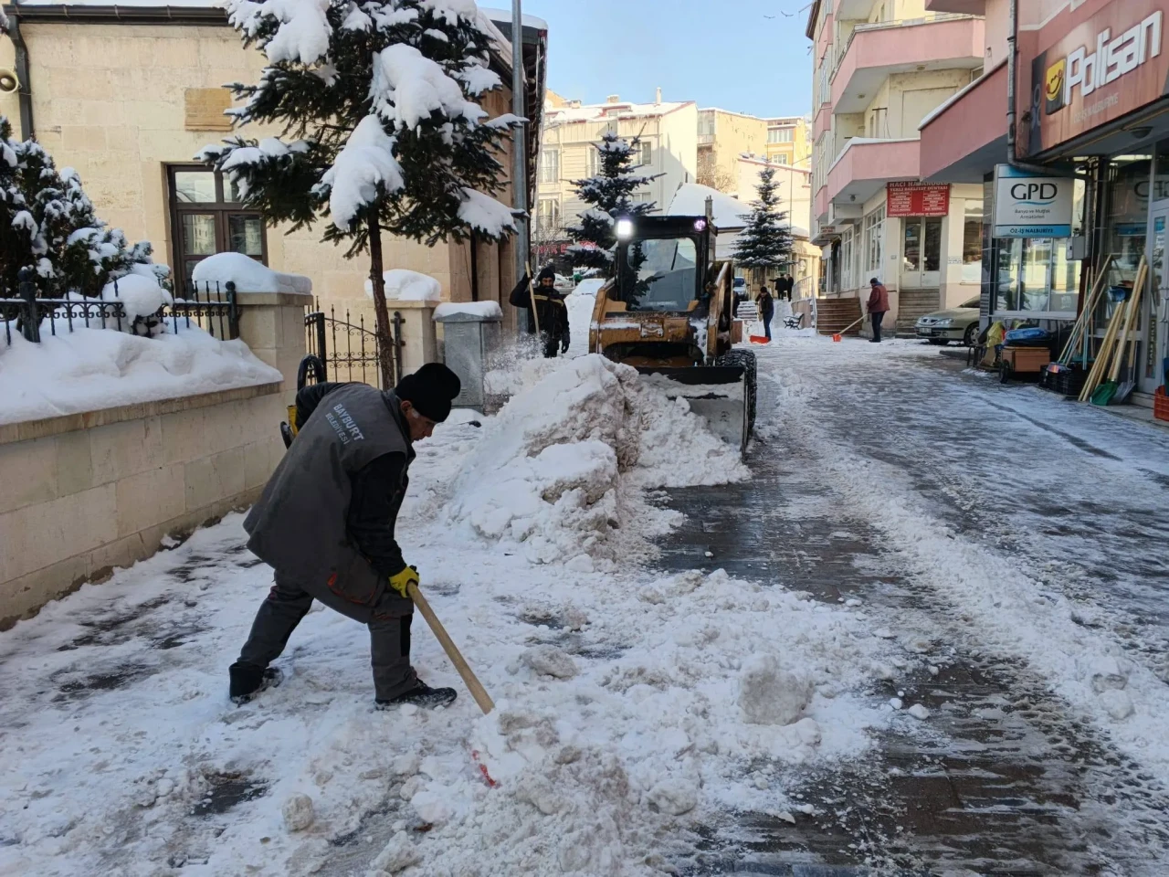 Bayburt'ta karla mücadele: Temizlik ekipleri yoğun mesai harcıyor