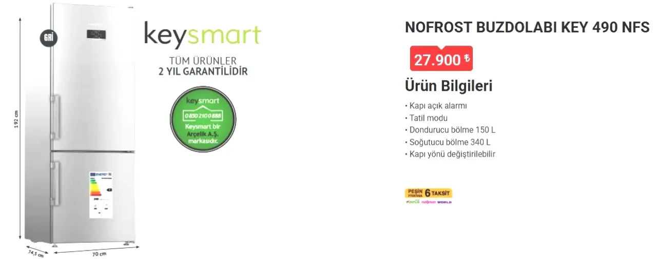 KEYSMART NOFROST BUZDOLABI KEY 490 NFS