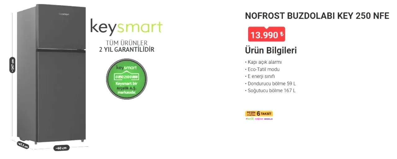 KEYSMART NOFROST BUZDOLABI KEY 250 NFE