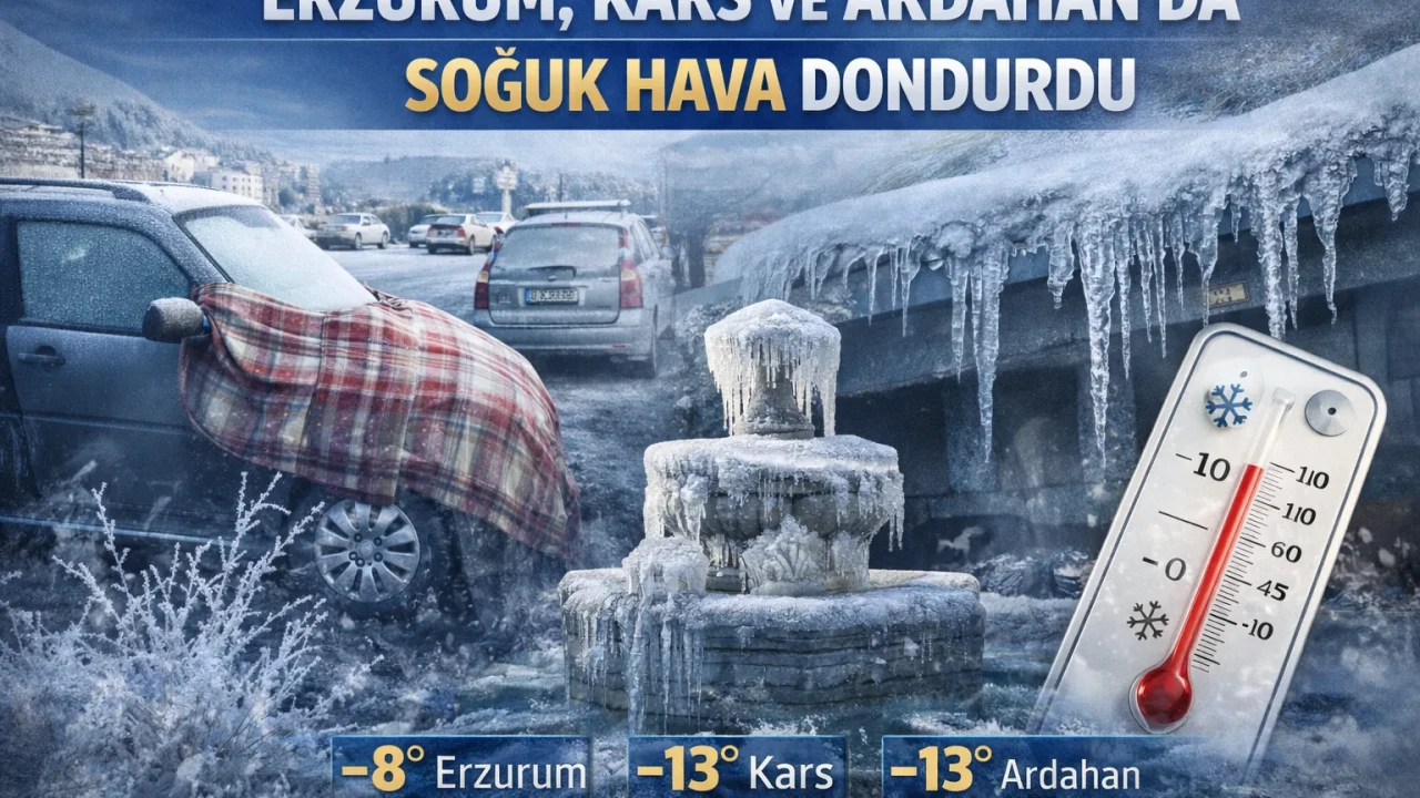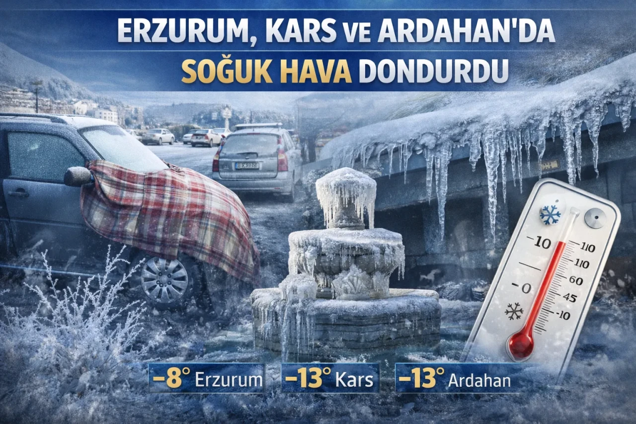 Erzurum, Kars ve Ardahan'da etkili olan dondurucu soğuklar, sulak alanları ve şadırvanları buzla kapladı. Gece sıcaklıkları sıfırın altında 13 dereceye kadar düştü; vatandaşlar araçlarını korumak için battaniye kullandı. Binalarda buz sarkıtları oluştu.