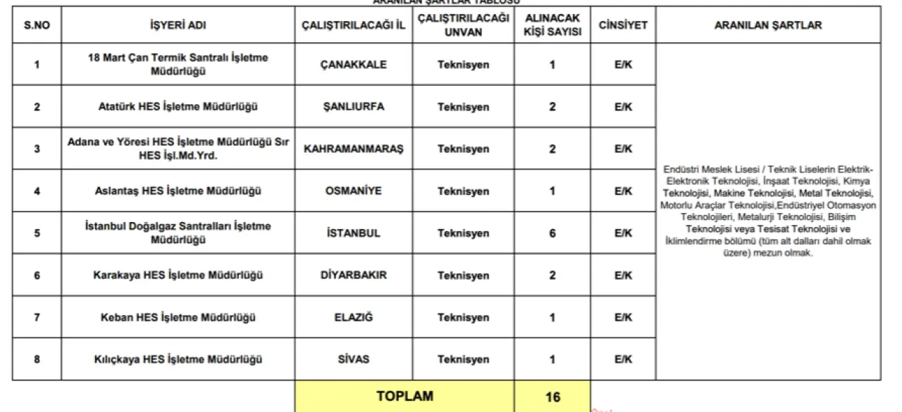 16 Teknisyen ( Eski Hükümlü / TMY )