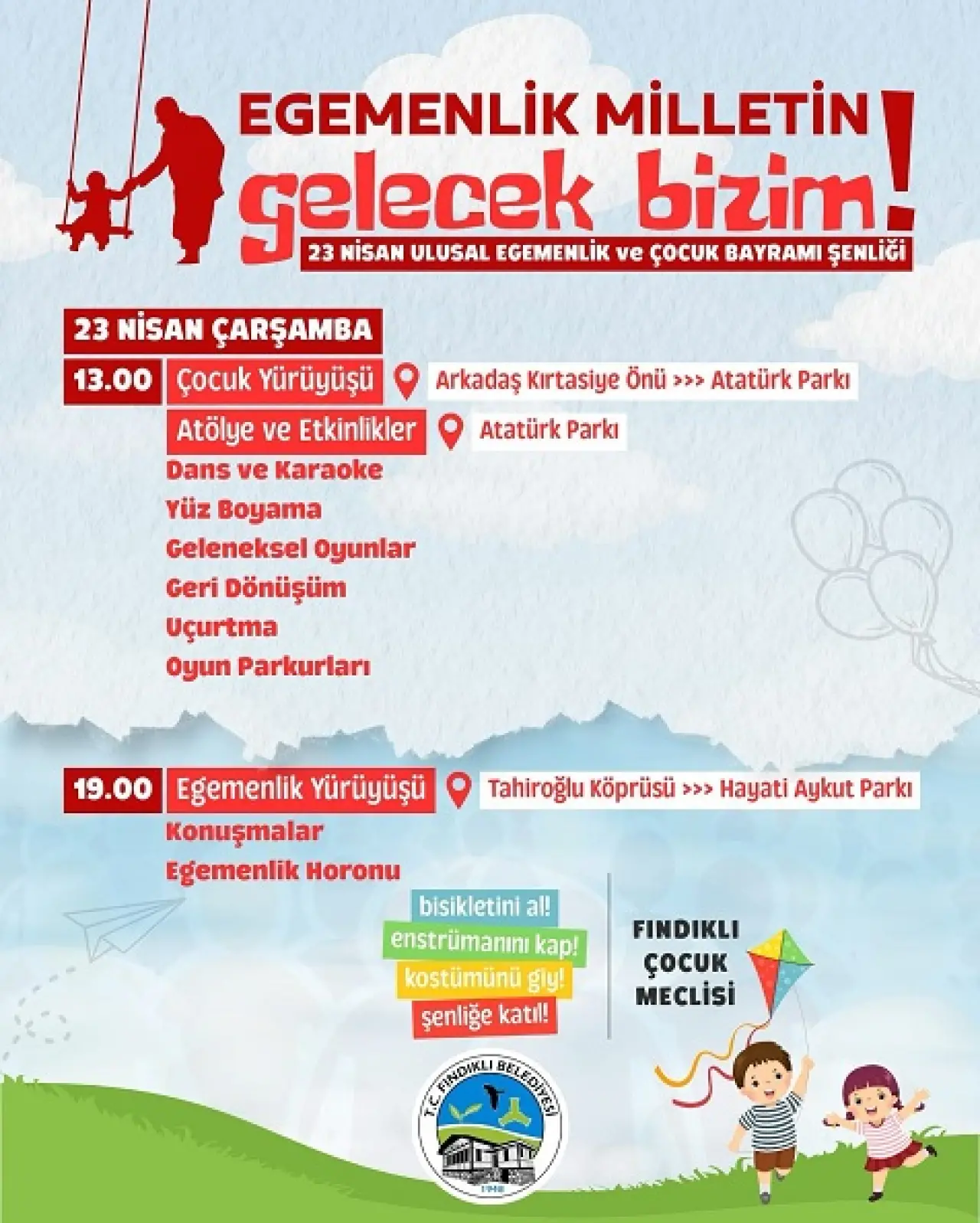 Rize'nin Fındıklı ilçesi, 23 Nisan Ulusal Egemenlik ve Çocuk Bayramı'nı, Fındıklı Çocuk Meclisi'nin düzenlediği etkinliklerle coşkuyla kutlayacak. Belediye Başkanı Ercüment Şahin Çervatoğlu, tüm çocukları ve ailelerini bu eğlenceli şenliğe katılmaya davet etti.