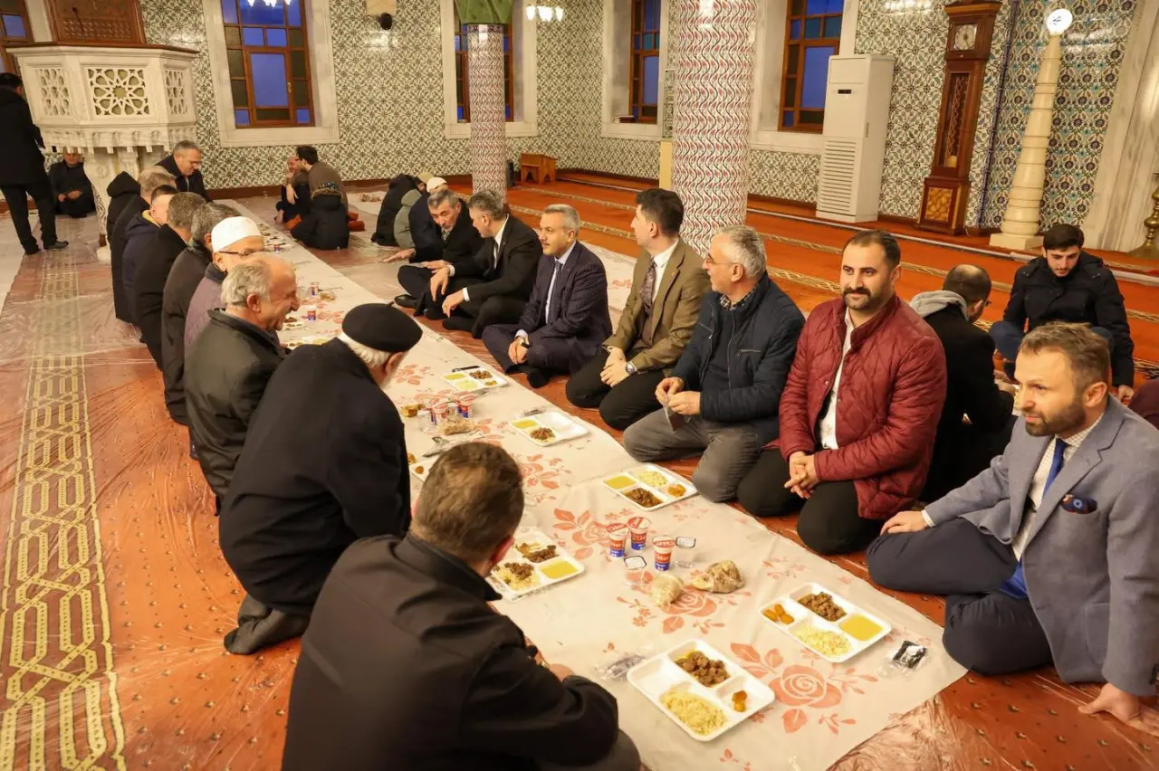 İftar programı kapsamında camide bir araya gelen vatandaşlar, aynı sofrada buluşarak Ramazan’ın paylaşma ruhunu yaşadı. Programda İl Müftüsü Naci Çakmakçı sohbet gerçekleştirirken, Güneysu İlçe Müftüsü Hasan Faruk Manavoğlu tarafından dua edildi.