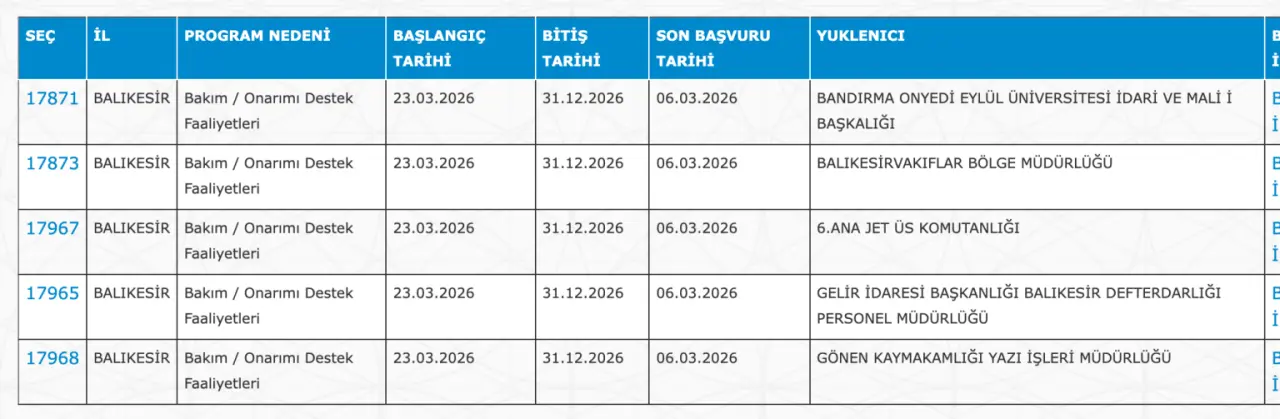 Balıkesir 75 İUP Personel İlanı: